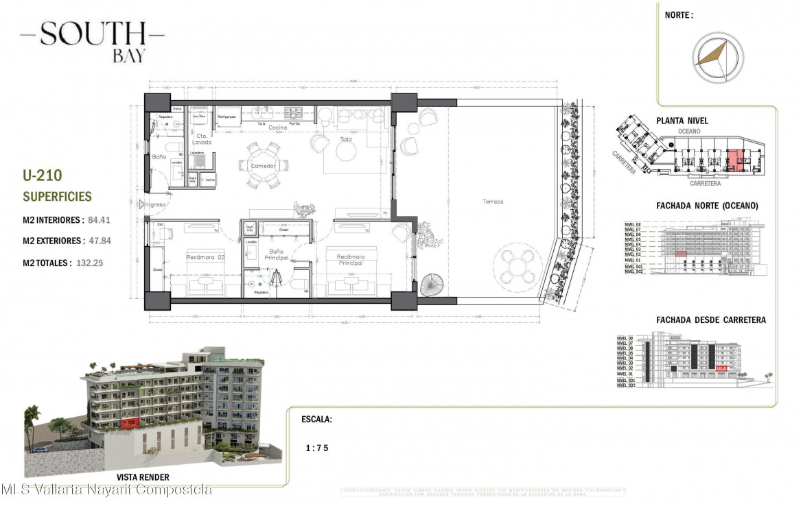 South Bay es un nuevo y exclusivo desarrollo ubicado en el corazon de la Zona Romantica, a pocos pasos de playas, restaurantes, galerias y vida nocturna. El proyecto contara con 65 condominios con vistas y en diversas configuraciones: unidades de 1 recamara, 1 recamara + flex, 1 recamara + den y 2 recamaras, todas con 2 banos completos. Con amenidades de primer nivel que incluyen:*Estacionamiento y bodegas disponibles para la mayoria de las unidades (con costo extra)*Alberca con vistas panoramicas en la azotea con terraza para asolearse*Gimnasio, area para mascotas y cancha de padel unica en la zona*Elevadores, acceso controlado y elegante lobbyUbicado sobre una via principal, South Bay combina accesibilidad, amenidades modernas y estilo de vida, siendo