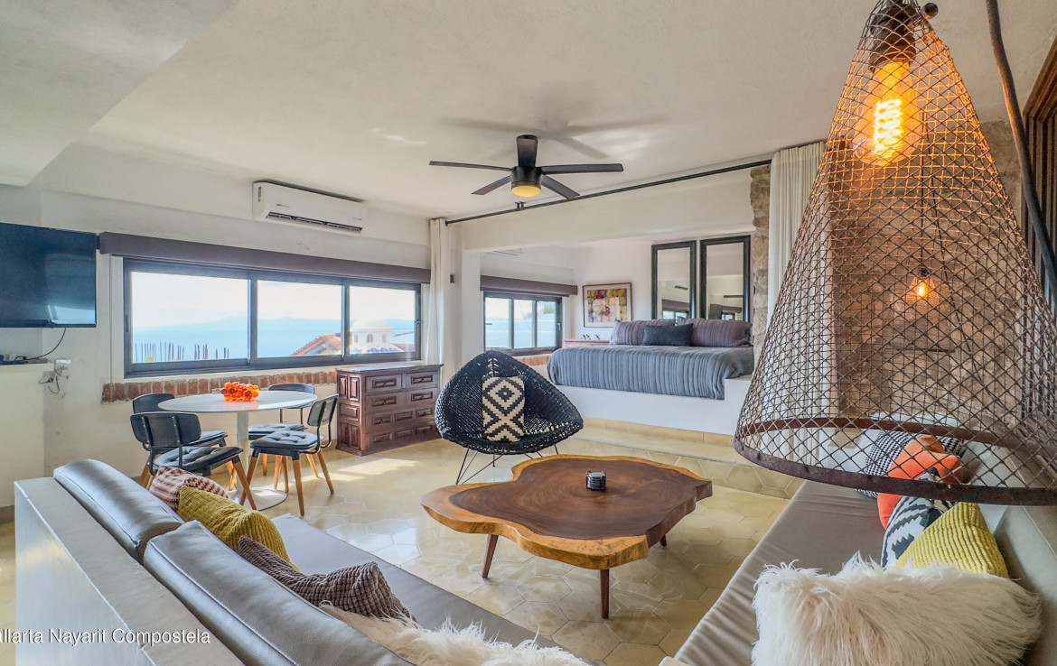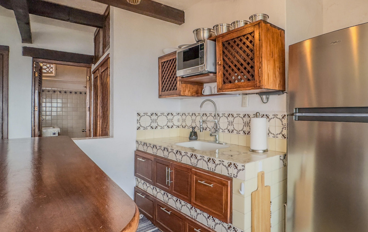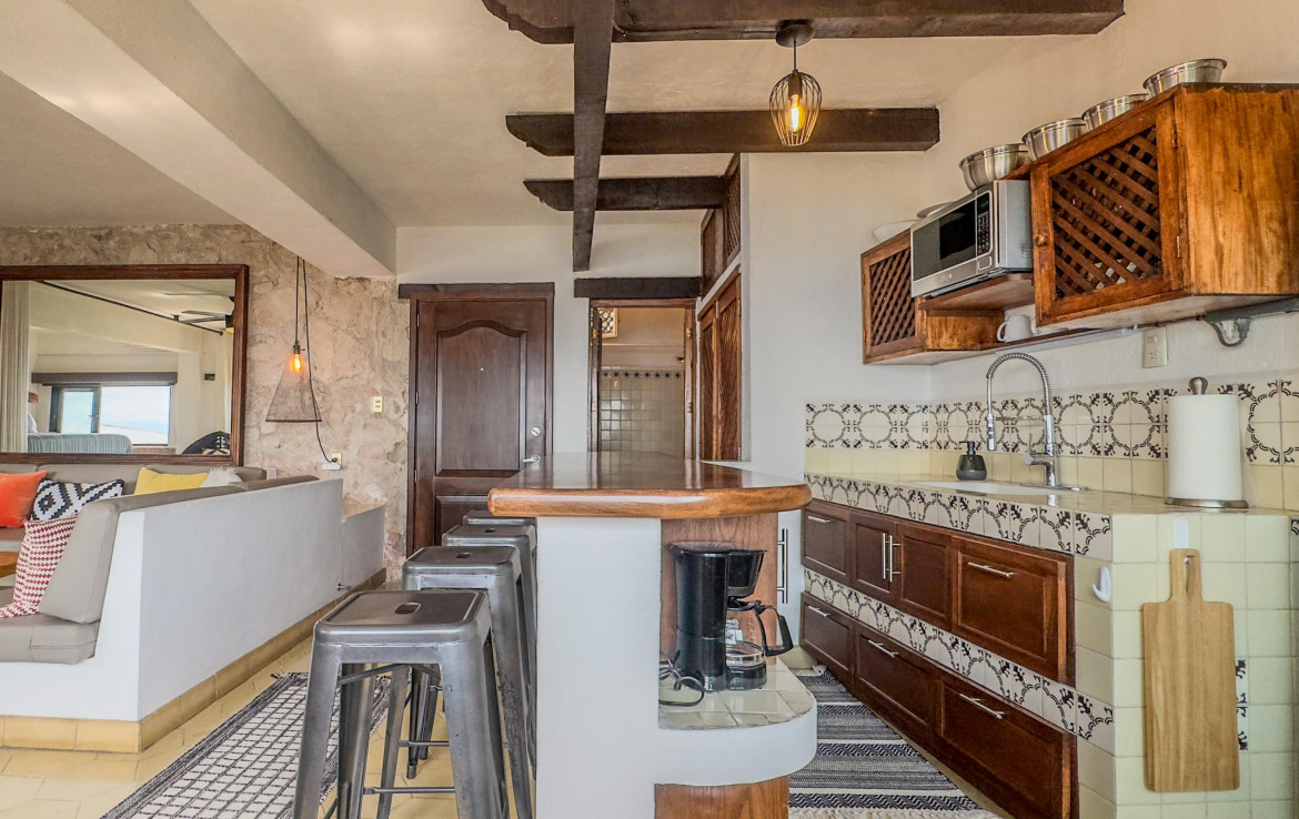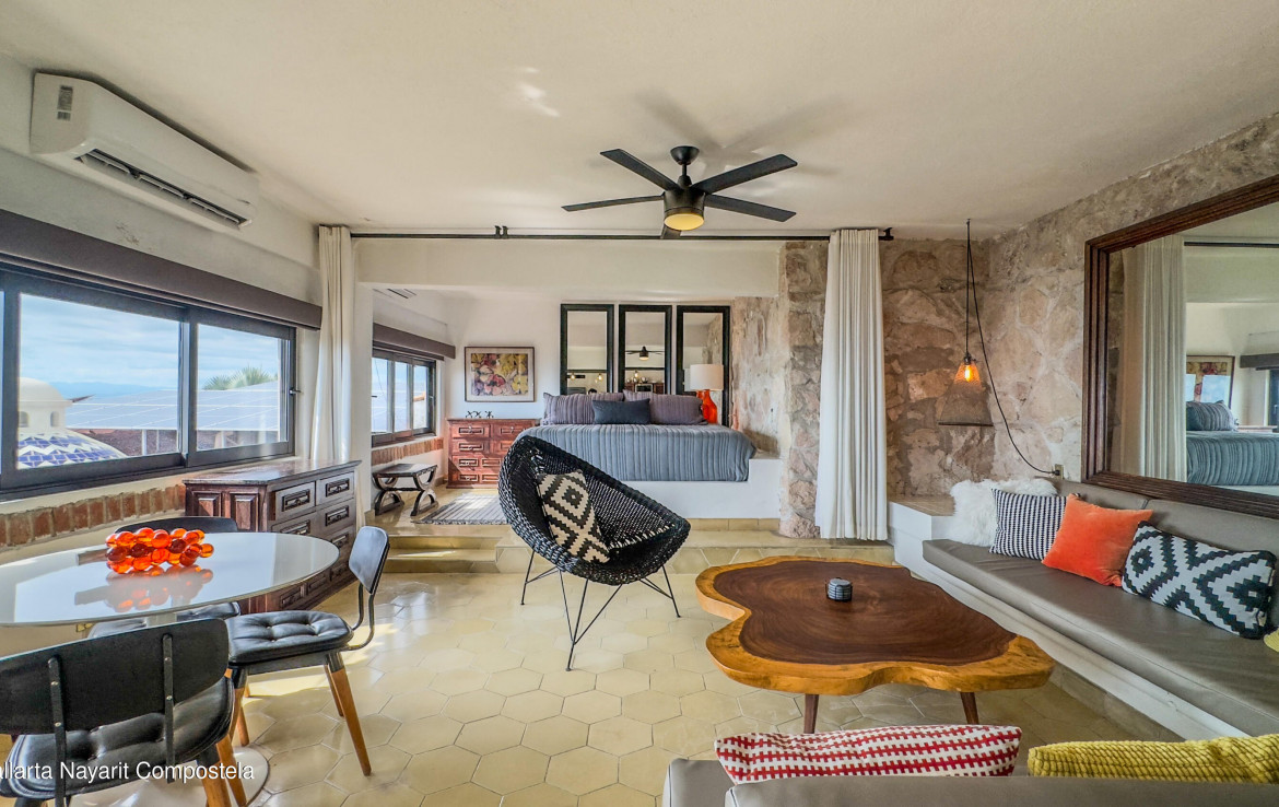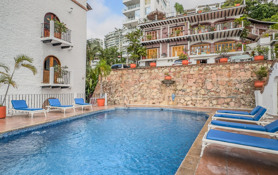 Estudio listo para habitar en el corazon de Amapas, Puerto Vallarta, ideal como refugio vacacional o inversion en renta. Este acogedor espacio combina el encanto tradicional mexicano con el confort moderno, con detalles tradicionales. Disfruta de una vista parcial al mar y de un entorno rodeado de vegetacion. Ubicado en Villa Tizoc, un edificio con caracter, alberca climatizada y areas comunes impecables, a solo minutos de la Zona Romantica y Playa Los Muertos. Totalmente amueblado y listo para mudarse, esta es la autentica vida Vallartense.