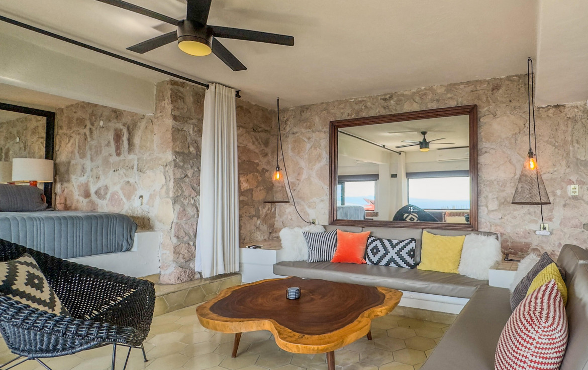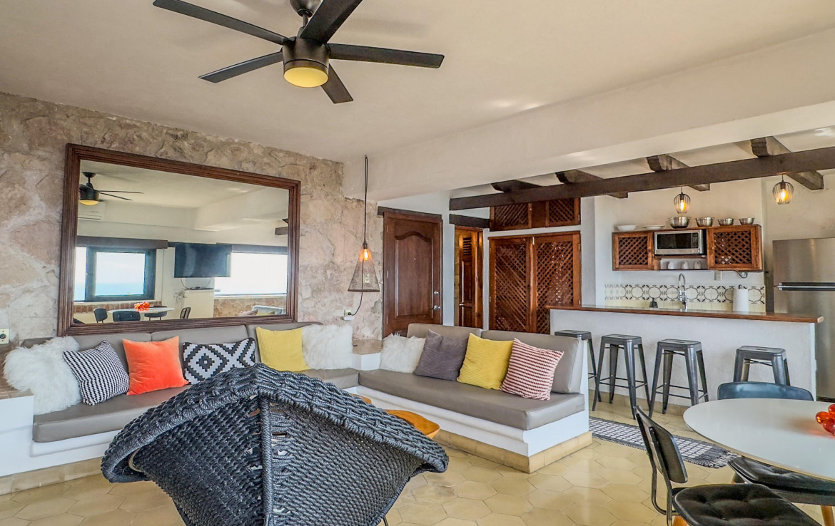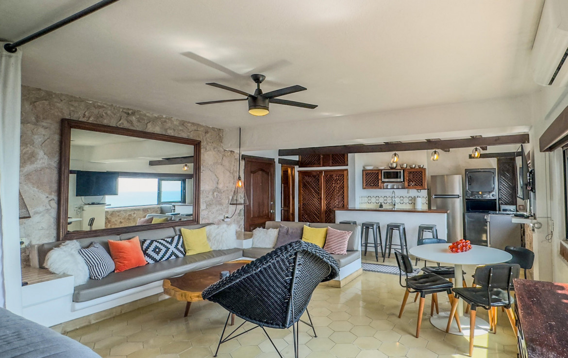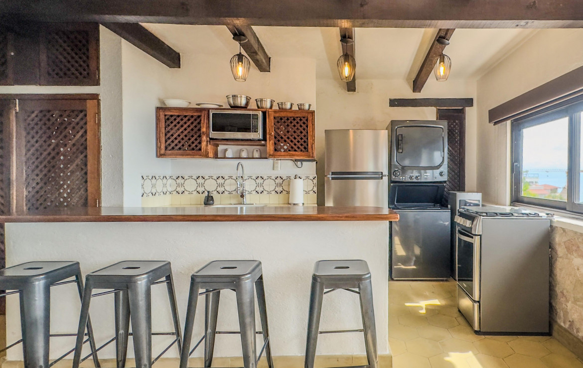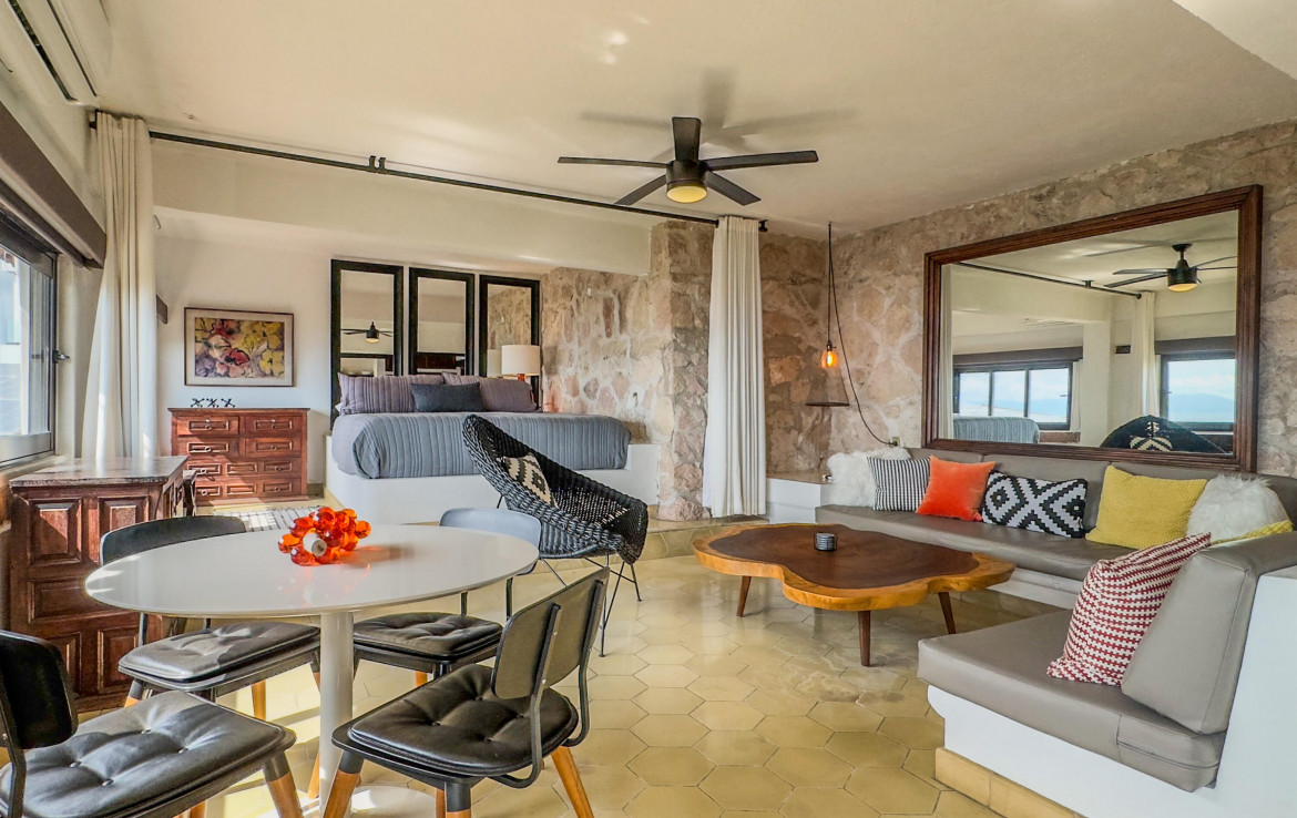 Estudio listo para habitar en el corazon de Amapas, Puerto Vallarta, ideal como refugio vacacional o inversion en renta. Este acogedor espacio combina el encanto tradicional mexicano con el confort moderno, con detalles tradicionales. Disfruta de una vista parcial al mar y de un entorno rodeado de vegetacion. Ubicado en Villa Tizoc, un edificio con caracter, alberca climatizada y areas comunes impecables, a solo minutos de la Zona Romantica y Playa Los Muertos. Totalmente amueblado y listo para mudarse, esta es la autentica vida Vallartense.