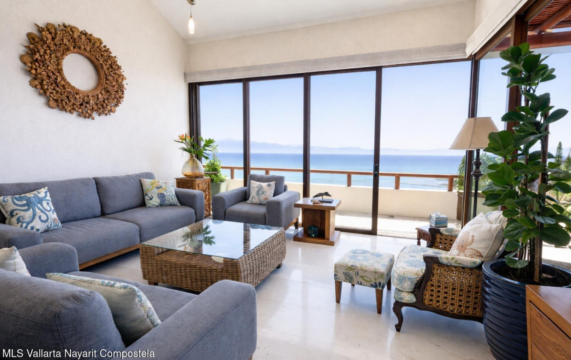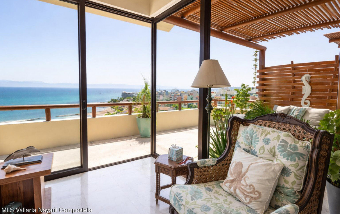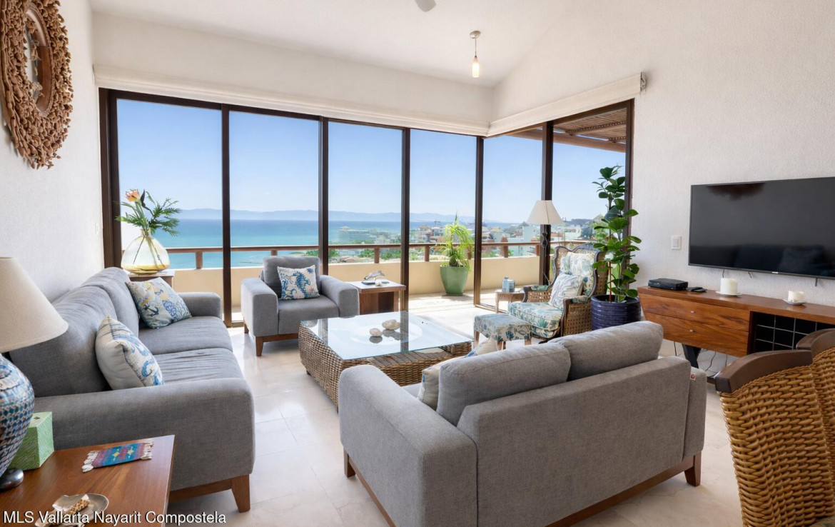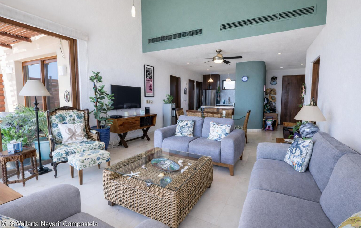 Exclusive top-floor penthouse with breathtaking ocean and Bay of Banderas views. Spacious terrace, 2 bedrooms, 2 full baths, bright open living areas. Beachfront community with 500+ m of shoreline, 8 pools, beach club, restaurant, spa, gym, tennis & 24/7 security.Exclusivo Penthouse en el ultimo piso con impresionantes vistas panoramicas al mar y a la Bahia de Banderas. Amplia terraza con atardeceres espectaculares y privacidad inigualable. Cuenta con 2 recamaras, 2 banos completos, espacios amplios y excelente iluminacion natural. Ubicado en Punta Esmeralda, La Cruz de Huanacaxtle, desarrollo frente al mar con mas de 500 m de playa, 8 albercas estilo veneciano, club de playa, restaurante, spa, gimnasio, tenis y seguridad 24/7.