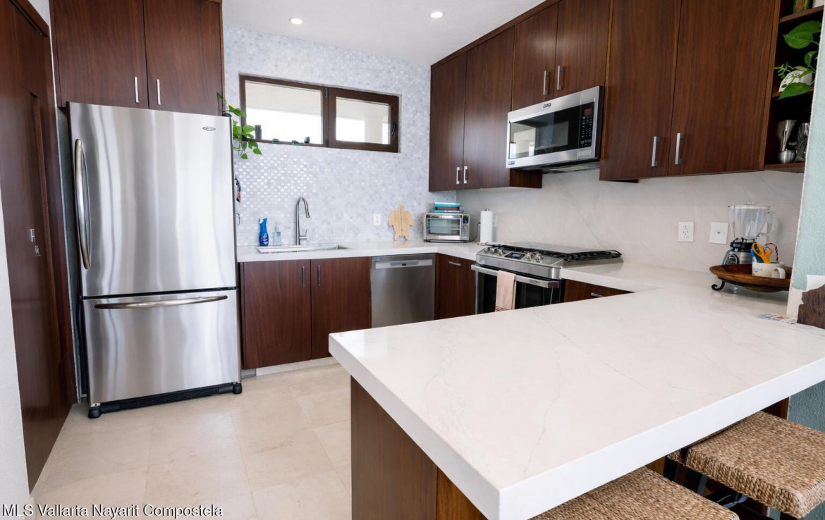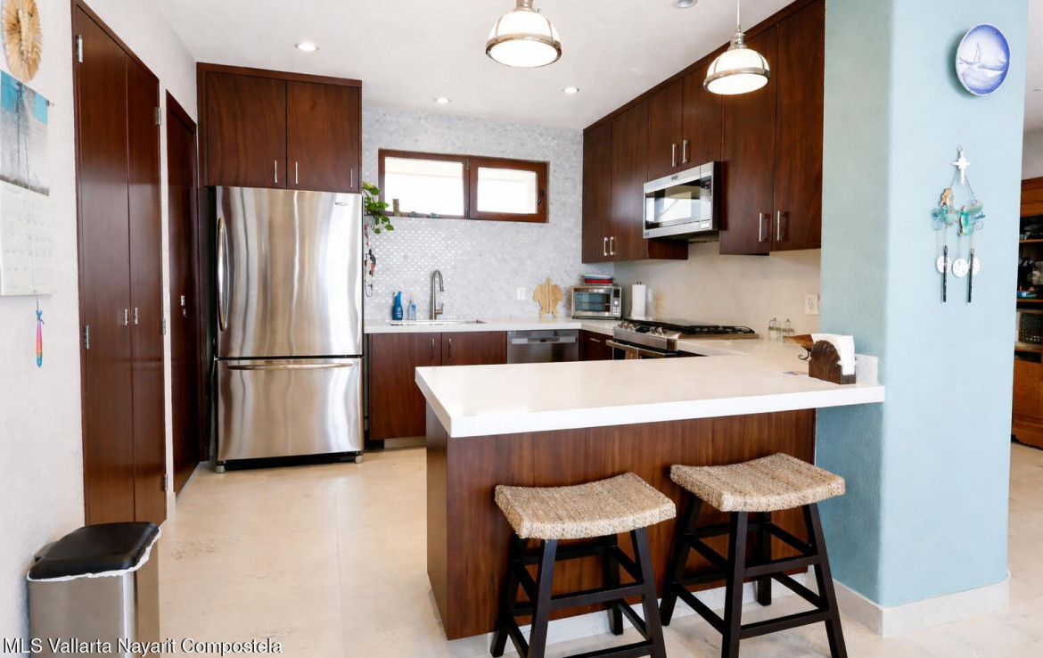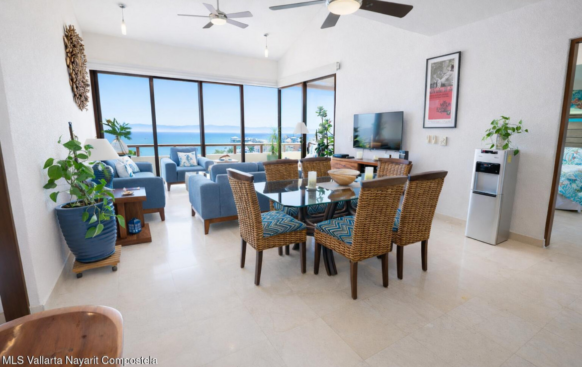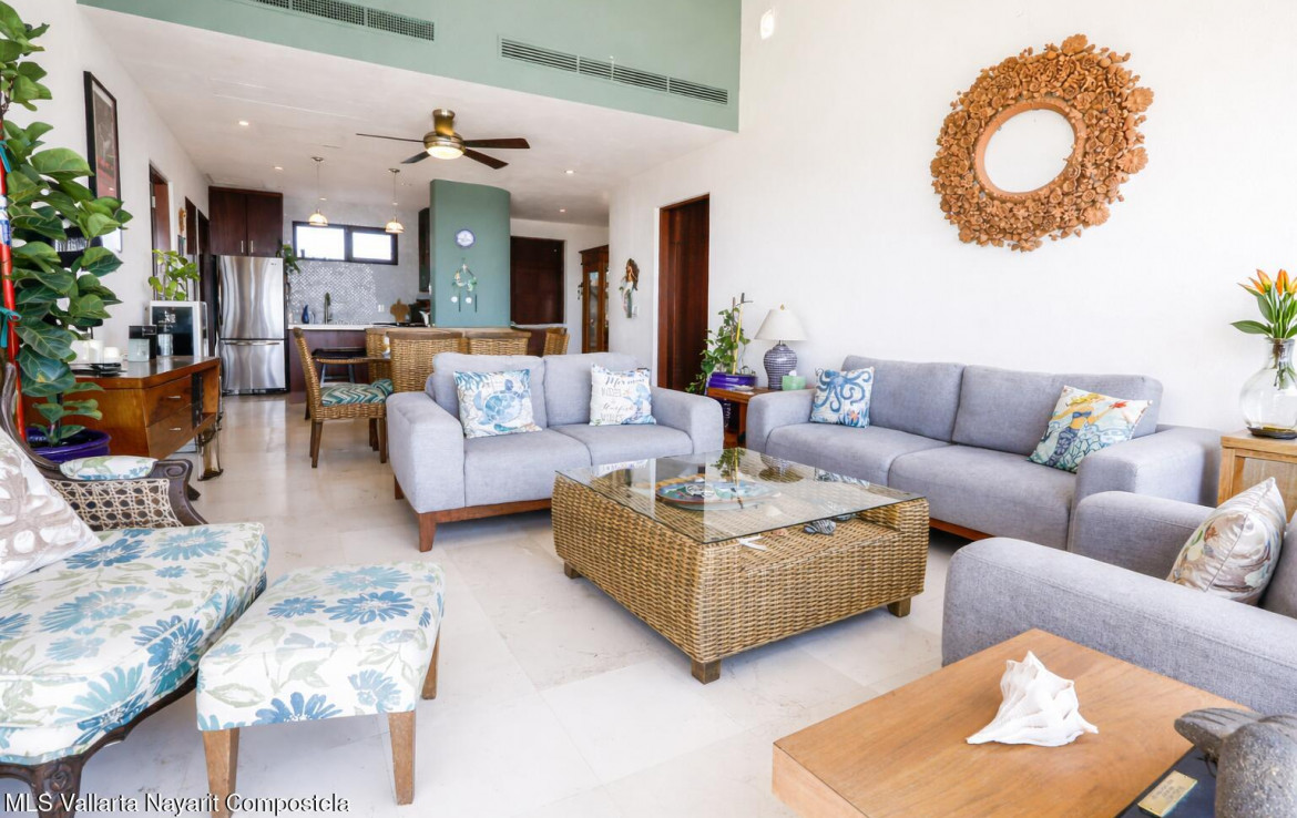 Exclusive top-floor penthouse with breathtaking ocean and Bay of Banderas views. Spacious terrace, 2 bedrooms, 2 full baths, bright open living areas. Beachfront community with 500+ m of shoreline, 8 pools, beach club, restaurant, spa, gym, tennis & 24/7 security.Exclusivo Penthouse en el ultimo piso con impresionantes vistas panoramicas al mar y a la Bahia de Banderas. Amplia terraza con atardeceres espectaculares y privacidad inigualable. Cuenta con 2 recamaras, 2 banos completos, espacios amplios y excelente iluminacion natural. Ubicado en Punta Esmeralda, La Cruz de Huanacaxtle, desarrollo frente al mar con mas de 500 m de playa, 8 albercas estilo veneciano, club de playa, restaurante, spa, gimnasio, tenis y seguridad 24/7.