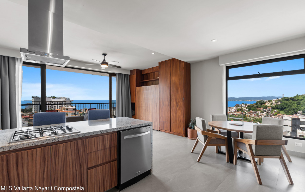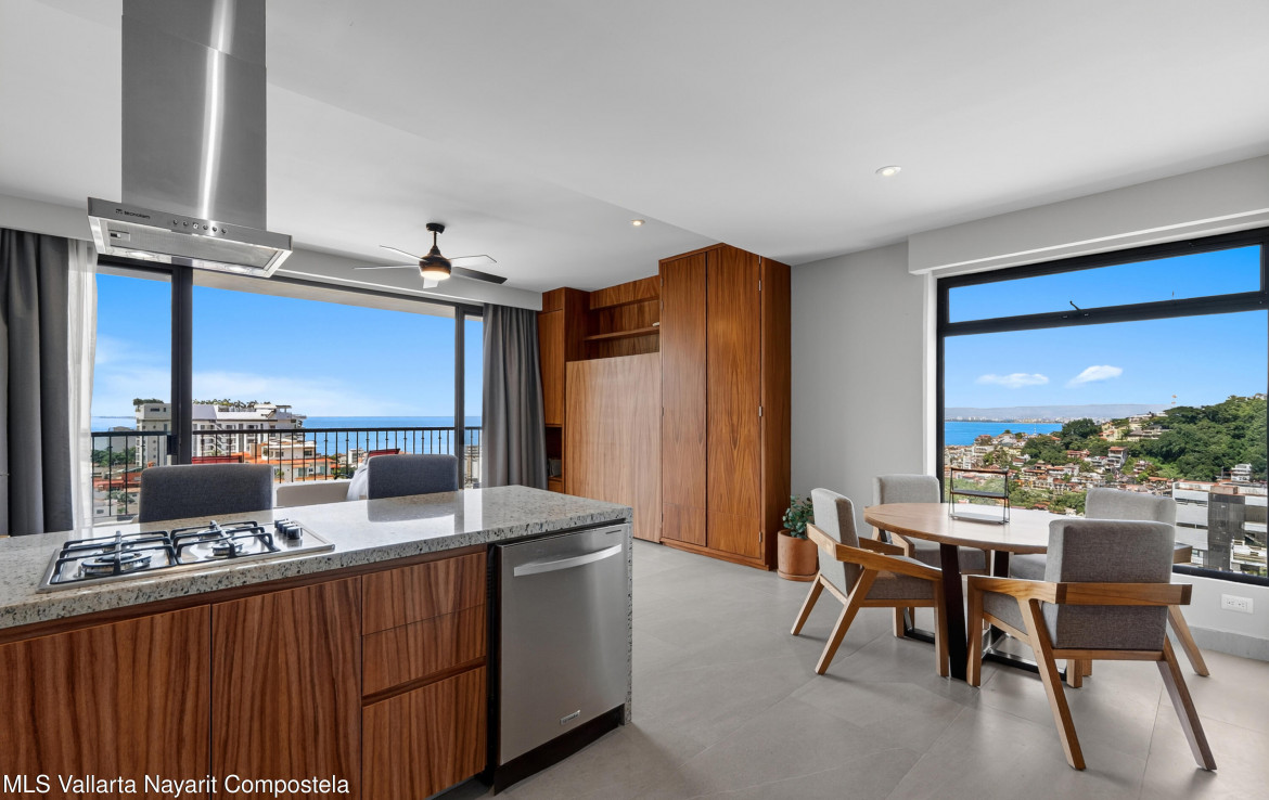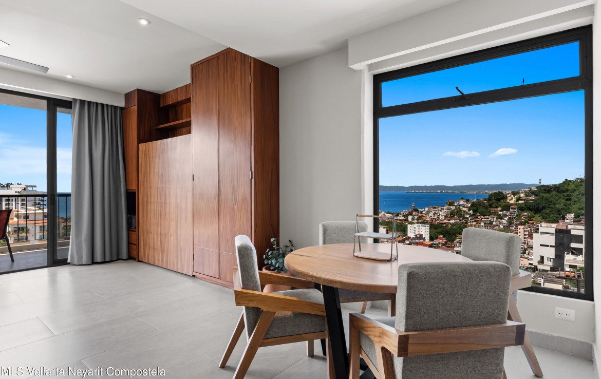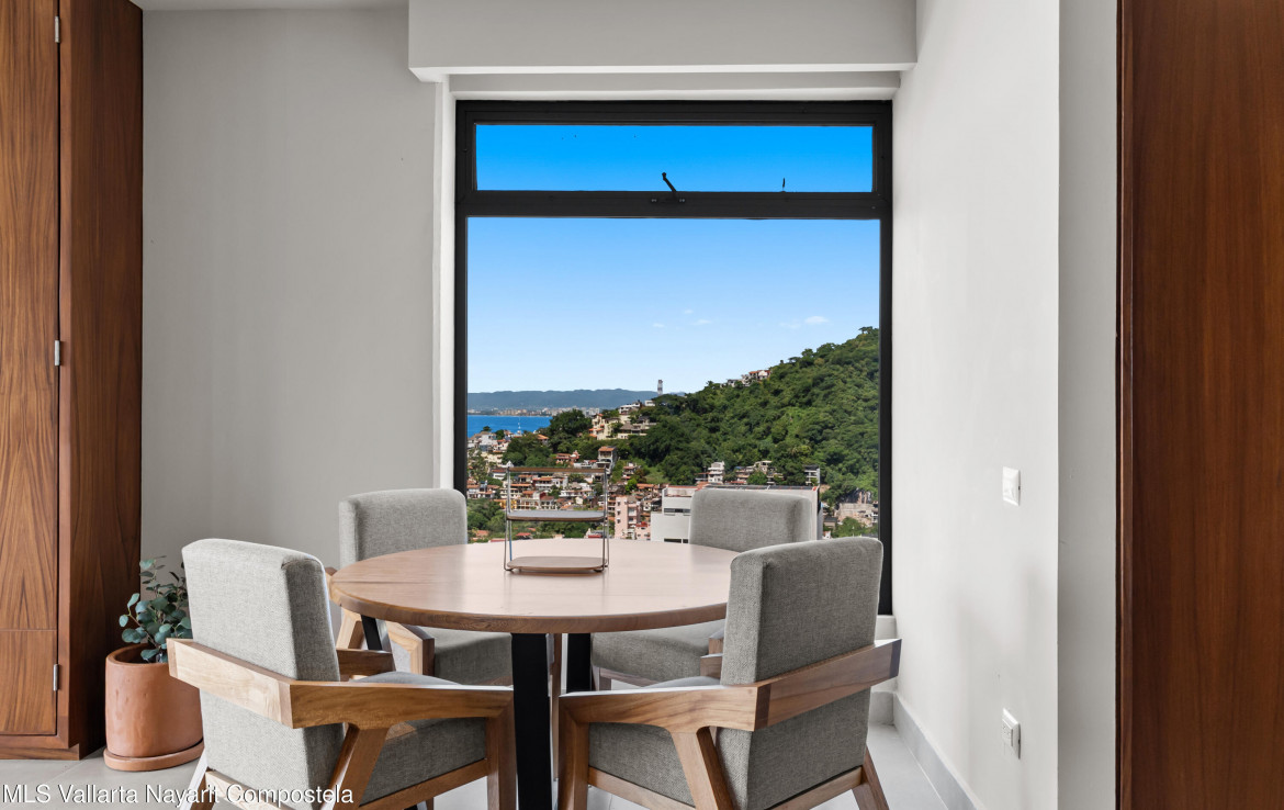 This unit is located on the 4th level, featuring an impressive balcony with incredible ocean views, and a large picture-frame window that feels like a living work of art–perfectly framing the bay, downtown Puerto Vallarta and the iconic church tower.The building showcases a stunning 360 rooftop with ocean, city and mountain views–ideal for relaxing or entertaining. Amenities include a rooftop pool and jacuzzi, gym, elevator, lounge areas and secure access.Torre Camichin is a boutique condominium offering exceptional rental potential and versatile lock-off layouts that allow you to maximize income. Located just a short walk from the Romantic Zone, you’ll be close to restaurants, cafes, art galleries and local shops, while still enjoying a quiet residential atmosphere.