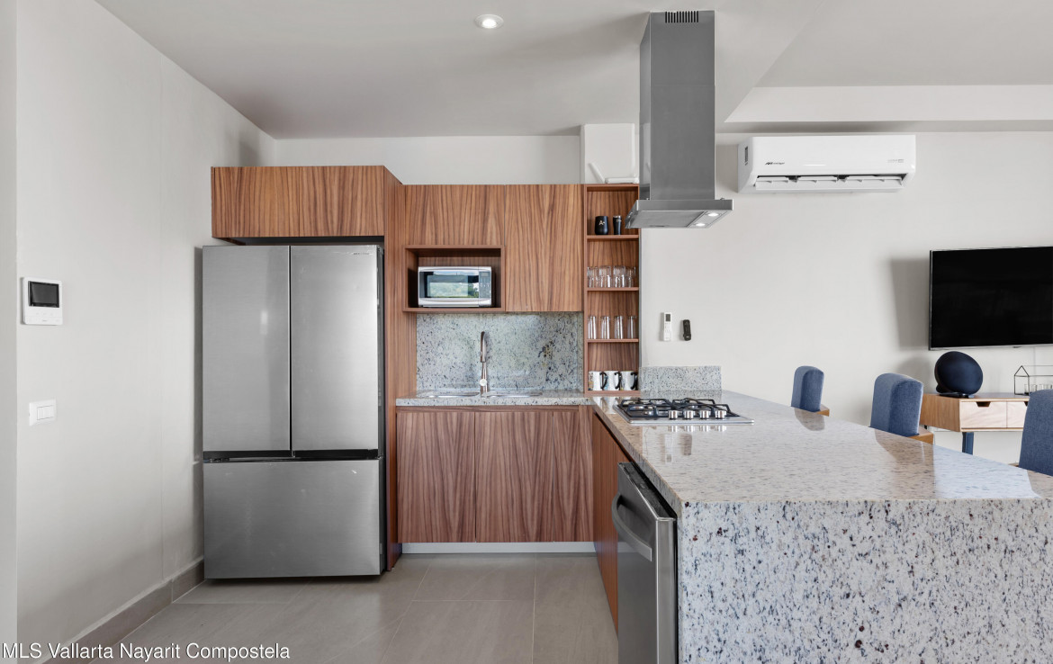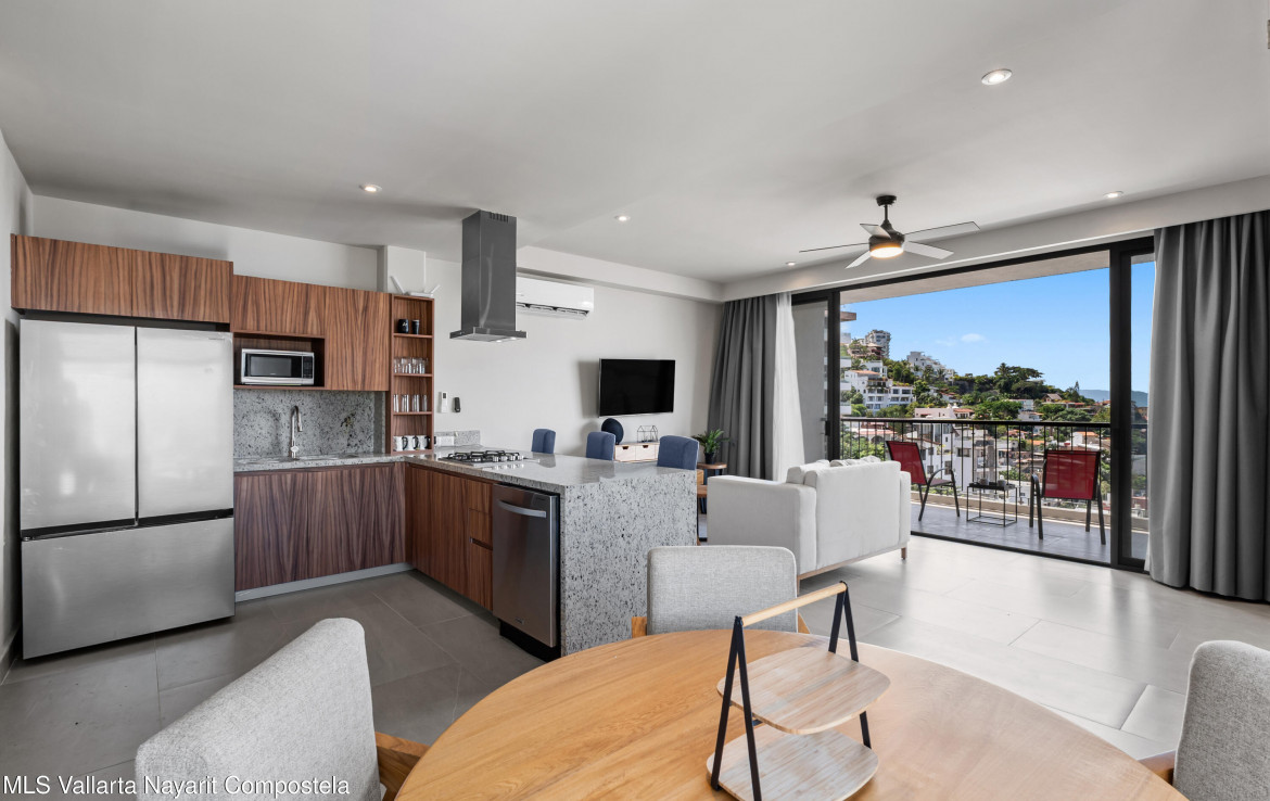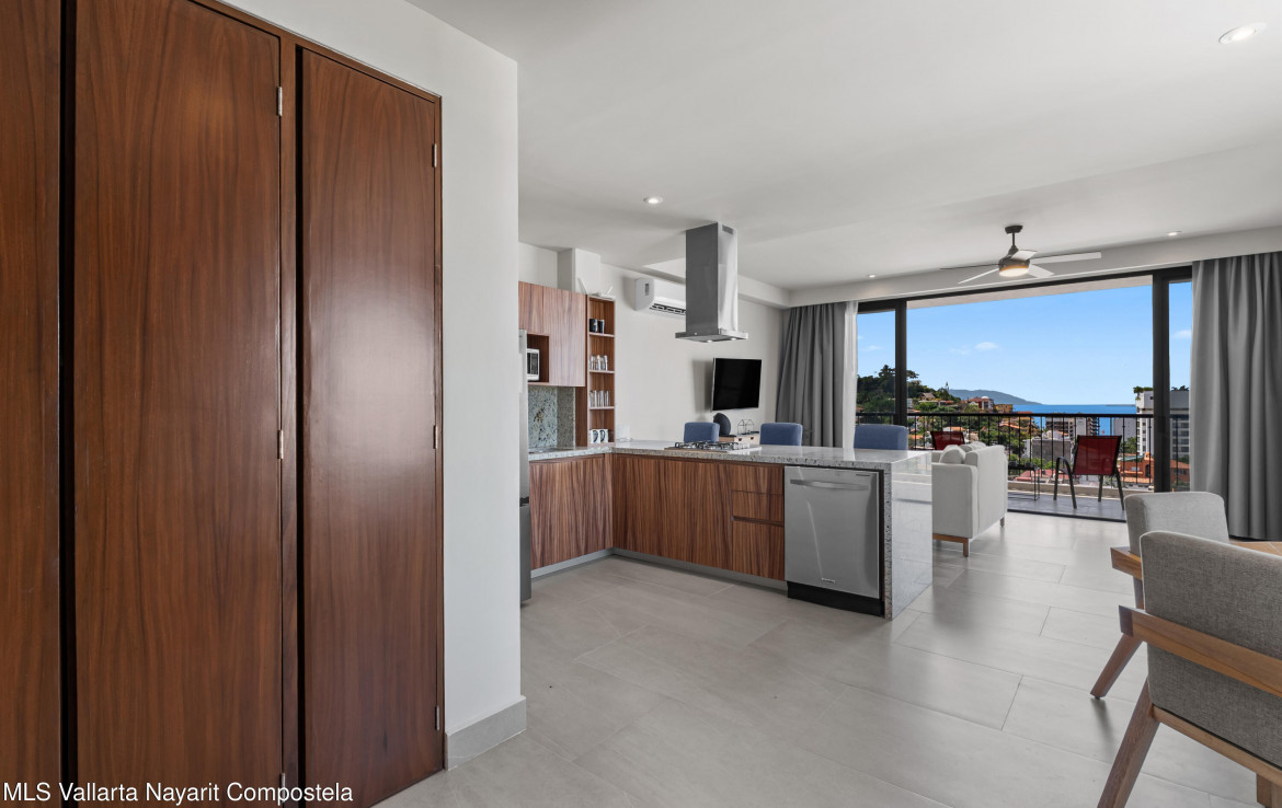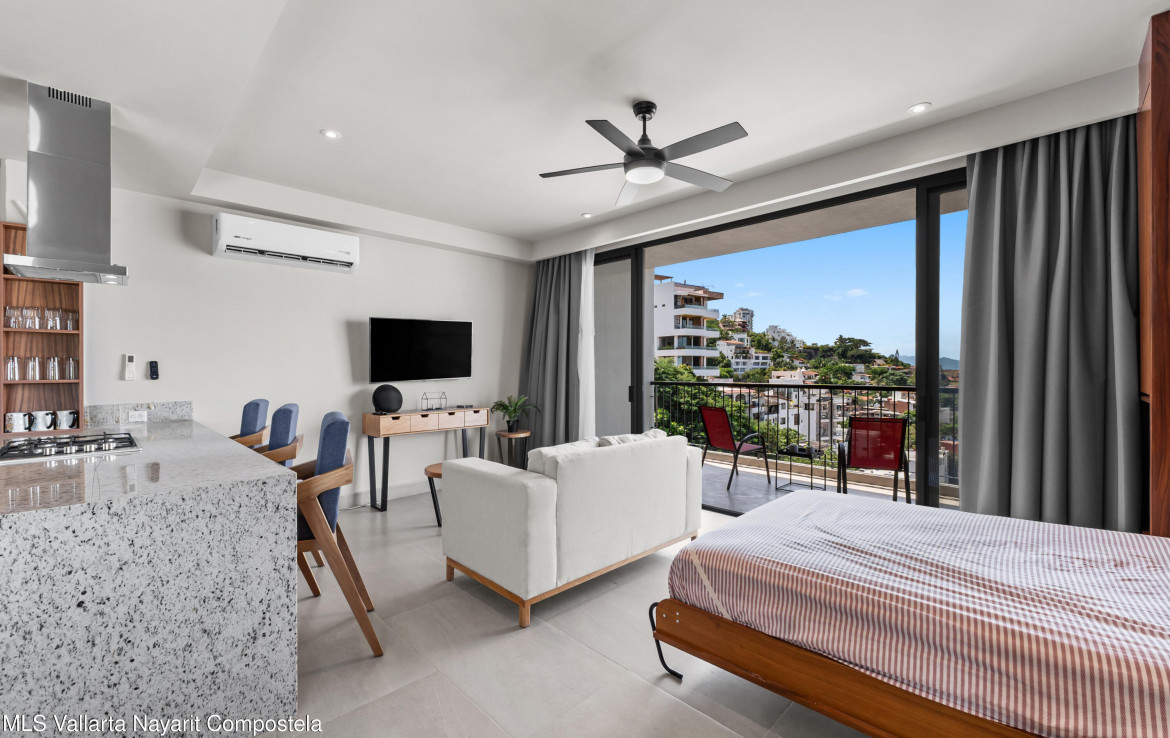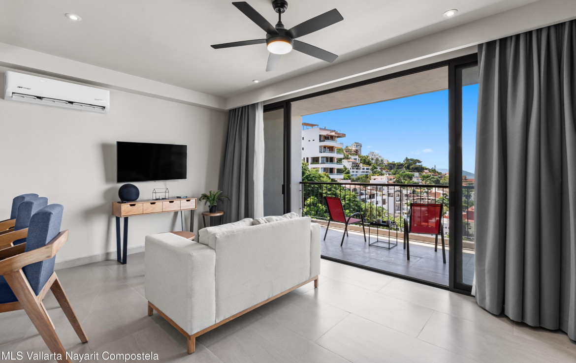 This unit is located on the 4th level, featuring an impressive balcony with incredible ocean views, and a large picture-frame window that feels like a living work of art–perfectly framing the bay, downtown Puerto Vallarta and the iconic church tower.The building showcases a stunning 360 rooftop with ocean, city and mountain views–ideal for relaxing or entertaining. Amenities include a rooftop pool and jacuzzi, gym, elevator, lounge areas and secure access.Torre Camichin is a boutique condominium offering exceptional rental potential and versatile lock-off layouts that allow you to maximize income. Located just a short walk from the Romantic Zone, you’ll be close to restaurants, cafes, art galleries and local shops, while still enjoying a quiet residential atmosphere.