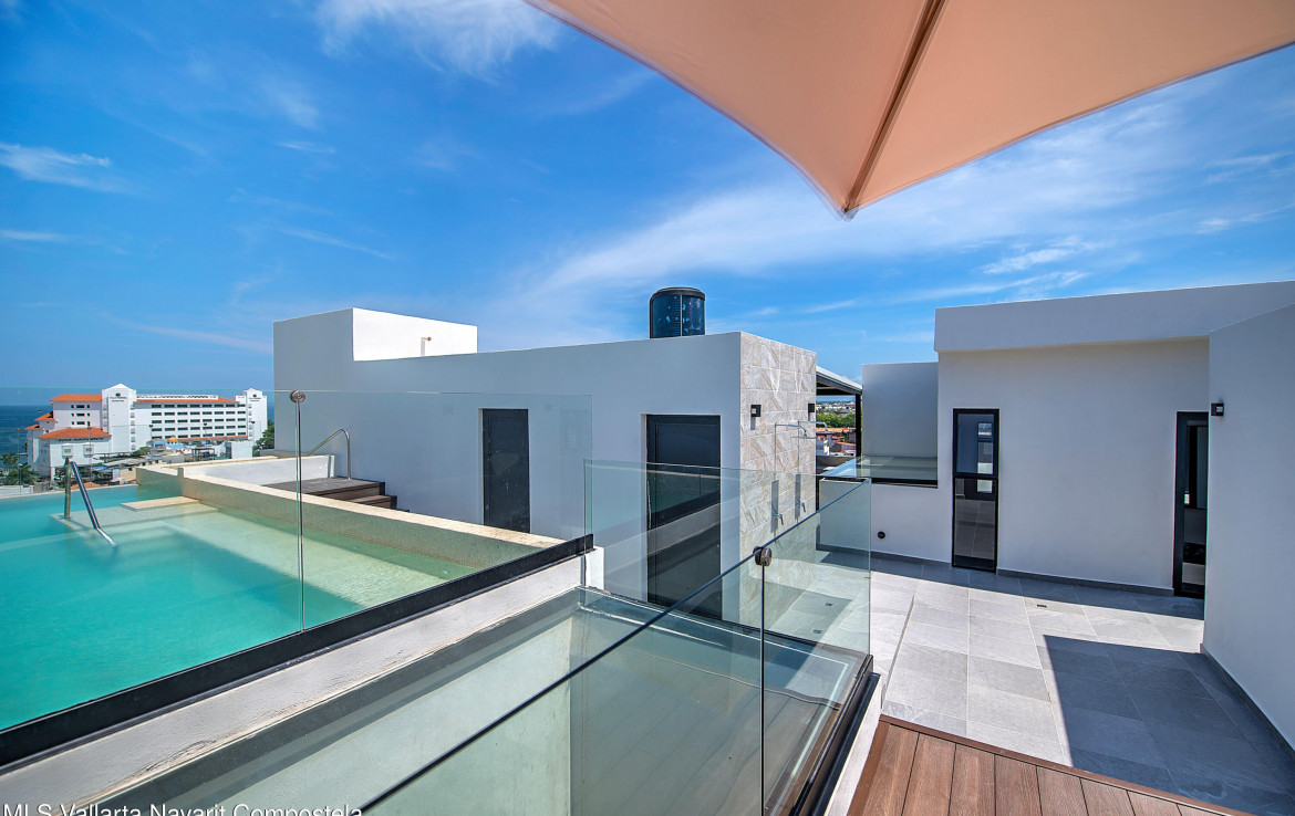 PRICE IS IN PESOS. PRECIO EN PESOSTHE PRICE AND OFFERS MUST BE IN PESOSEL PRECIO Y CUALQUIER OFERTA DEBERA SER EN PESOSPRICE HAS NOT CHANGED, ONLY THE EXCHANGE RATE!!!!!Wake up to panoramic views that stretch from emerald green mountains to the shimmering Pacific Ocean.Nestled high above the city, this stylish two-bedroom, two-bath residence at Torre Doze invites you to live every day like you’re on vacation.Step out onto your private rooftop terrace – perfect for morning coffee as the sun rises over the lush hillside, or evening cocktails as the sky melts into ocean blues and fiery sunsets.And for the ultimate touch of privacy and style, your elevator opens directly into your home – making every arrival feel exclusive.