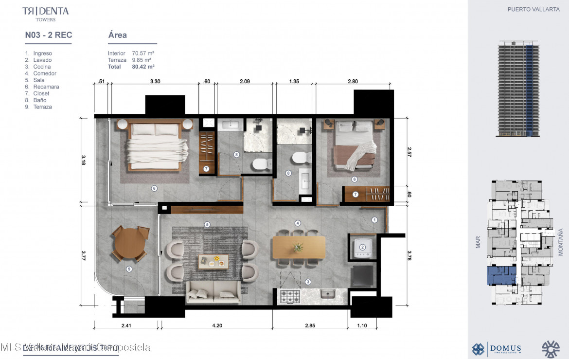 Disenado por los aclamados arquitectos de GVA, Tridenta Towers presenta un estilo de vida de playa en la Zona Hotelera de Puerto Vallarta. Esta obra maestra arquitectonica ofrece 312 exquisitas residencias en la Torre 1, desde estudios hasta departamentos de 3 habitaciones, cada uno con impresionantes vistas al mar o a las montanas. Disfruta de amenidades que incluyen albercas infinity, una increible terraza superior con vistas panoramicas a la bahia, un beach club, canchas de padel, gimnasio y exuberantes jardines tropicales. Su ubicacion privilegiada combina la tranquilidad de vivir frente al mar con facil acceso a restaurantes y vida nocturna. Estacionamiento disponible con costo adicional.