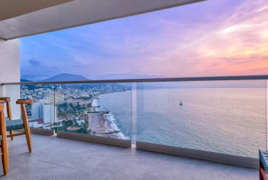 Tridenta Towers presenta un estilo de vida de playa en la Zona Hotelera de Puerto Vallarta. Esta obra maestra arquitectonica ofrece 335 exquisitas residencias en la Torre 1, desde estudios hasta departamentos de 3 habitaciones, cada uno con impresionantes vistas al mar o a las montanas. Disfruta de amenidades que incluyen albercas infinity, una increible terraza superior con vistas panoramicas a la bahia, un beach club, canchas de padel, gimnasio y exuberantes jardines tropicales. Su ubicacion privilegiada combina la tranquilidad de vivir frente al mar con facil acceso a restaurantes y vida nocturna. Estacionamiento disponible con costo adicional.