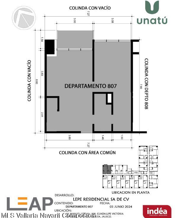 Ubicado en Calle Manuel Lepe, Col. Guadalupe Victoria, una de las zonas con mayor crecimiento y plusvalia en Puerto Vallarta, UNATU ofrece alta conectividad al aeropuerto, central camionera, centros comerciales y playas. Desarrollado por INDEA, cuenta con 116 departamentos en 10 niveles + rooftop, amenidades premium, estacionamiento y bodegas. Entrega estimada abril 2028. Mantenimiento aprox. $45 MXN/m.