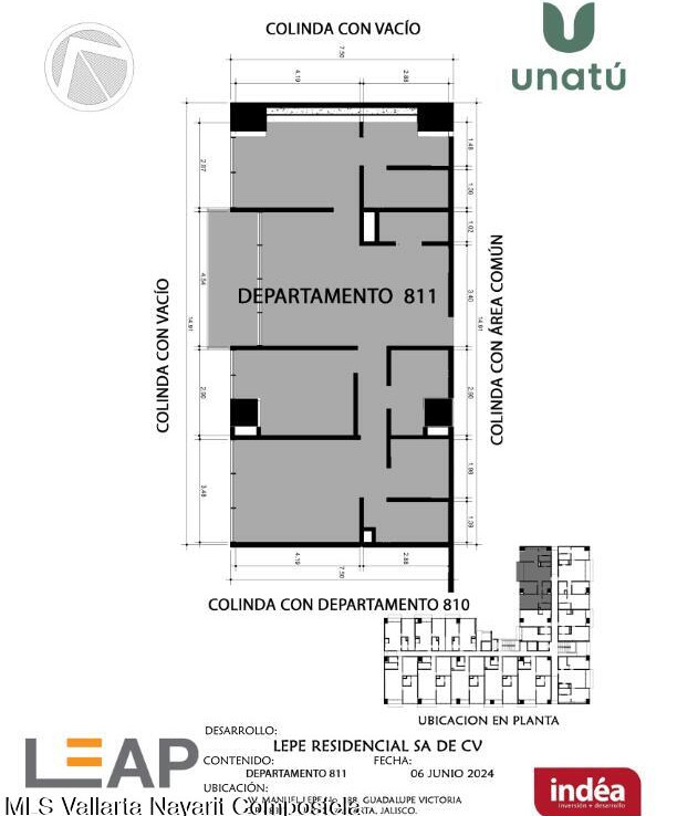 Ubicado en Calle Manuel Lepe, Col. Guadalupe Victoria, una de las zonas con mayor crecimiento y plusvalia en Puerto Vallarta, UNATU ofrece alta conectividad al aeropuerto, central camionera, centros comerciales y playas. Desarrollado por INDEA, cuenta con 116 departamentos en 10 niveles + rooftop, amenidades premium, estacionamiento y bodegas. Entrega estimada abril 2028. Mantenimiento aprox. $45 MXN/m.