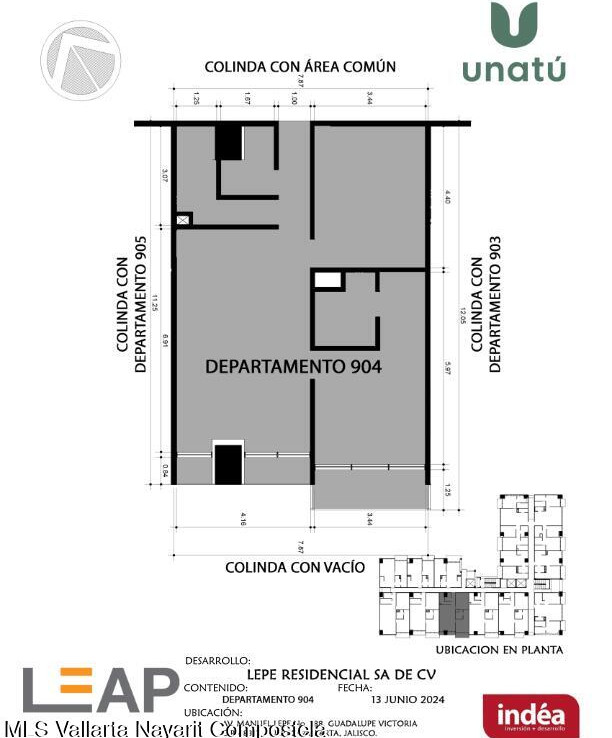 Ubicado en Calle Manuel Lepe, Col. Guadalupe Victoria, una de las zonas con mayor crecimiento y plusvalia en Puerto Vallarta, UNATU ofrece alta conectividad al aeropuerto, central camionera, centros comerciales y playas. Desarrollado por INDEA, cuenta con 116 departamentos en 10 niveles + rooftop, amenidades premium, estacionamiento y bodegas. Entrega estimada abril 2028. Mantenimiento aprox. $45 MXN/m.