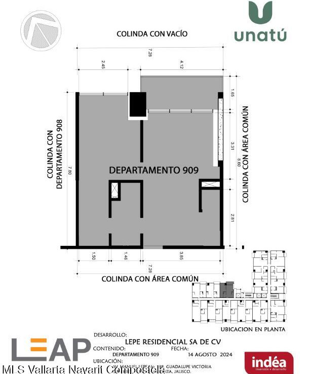 Ubicado en Calle Manuel Lepe, Col. Guadalupe Victoria, una de las zonas con mayor crecimiento y plusvalia en Puerto Vallarta, UNATU ofrece alta conectividad al aeropuerto, central camionera, centros comerciales y playas. Desarrollado por INDEA, cuenta con 116 departamentos en 10 niveles + rooftop, amenidades premium, estacionamiento y bodegas. Entrega estimada abril 2028. Mantenimiento aprox. $45 MXN/m.