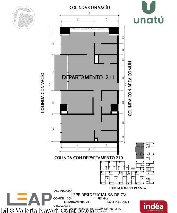 Ubicado en Calle Manuel Lepe, Col. Guadalupe Victoria, una de las zonas con mayor crecimiento y plusvalia en Puerto Vallarta, UNATU ofrece alta conectividad al aeropuerto, central camionera, centros comerciales y playas. Desarrollado por INDEA, cuenta con 116 departamentos en 10 niveles + rooftop, amenidades premium, estacionamiento y bodegas. Entrega estimada abril 2028. Mantenimiento aprox.