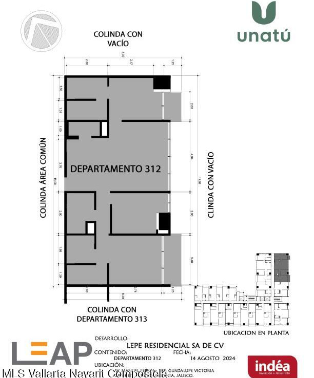 Ubicado en Calle Manuel Lepe, Col. Guadalupe Victoria, una de las zonas con mayor crecimiento y plusvalia en Puerto Vallarta, UNATU ofrece alta conectividad al aeropuerto, central camionera, centros comerciales y playas. Desarrollado por INDEA, cuenta con 116 departamentos en 10 niveles + rooftop, amenidades premium, estacionamiento y bodegas. Entrega estimada abril 2028.