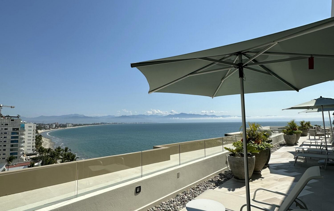 Excelente Condo en el 5to piso, con una increible vista panoramica al Oceano Pacifico desde su Gran Terraza. Cuenta con una Recamara Master y una Recamara Flex , 2 Banos completos, Cocina Equipada , Sala integrada, Cuarto de Lavado y un Cajon de Estacionamiento escriturado. V BUCERIAS cuenta con exclusivas amenidades como: Gimnasio, Play Room, Alberca Climatizada, Jacuzzi, Restaurantes, etc.Excellent Condo on the 5th floor, with an incredible panoramic view of the Pacific Ocean from its Large Terrace. It has a Master Bedroom and an additional Flex Bedroom, 2 full Bathrooms, Equipped Kitchen, Integrated Living Room, Laundry Room and a Deeded Parking Space.V BUCERIAS has exclusive amenities such as: Gym, Play Room, Heated Pool, Jacuzzi, Restaurants, etc.