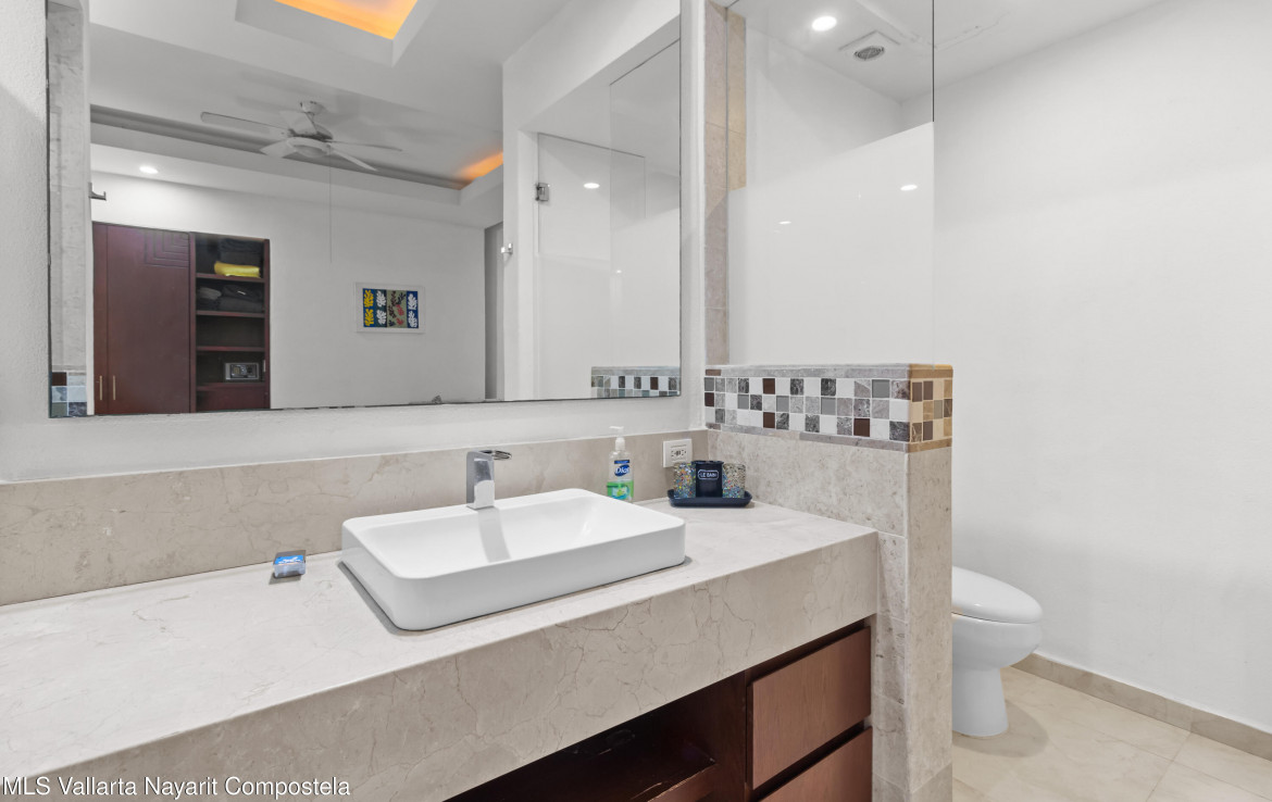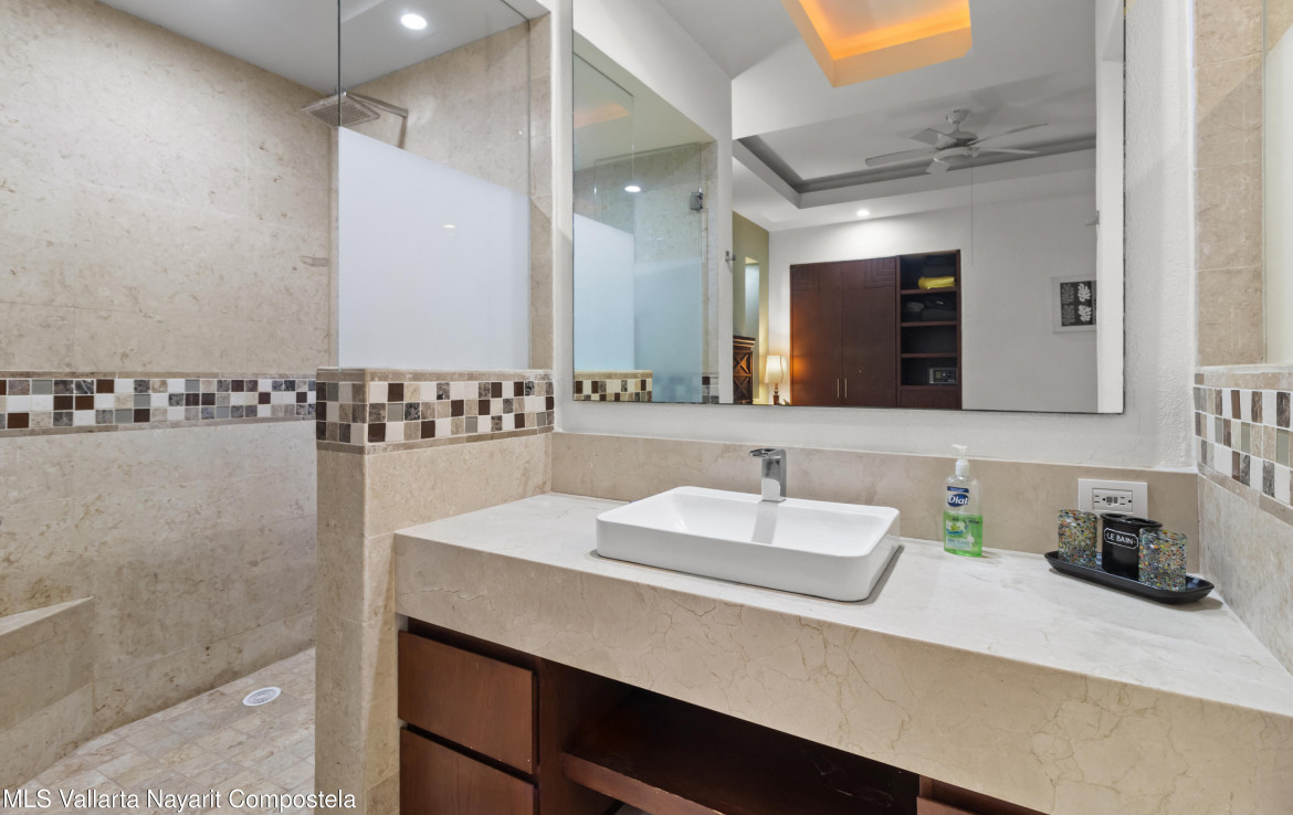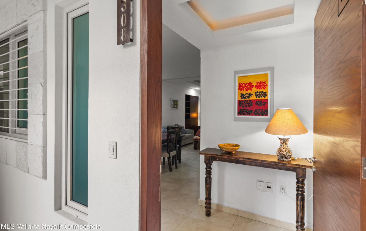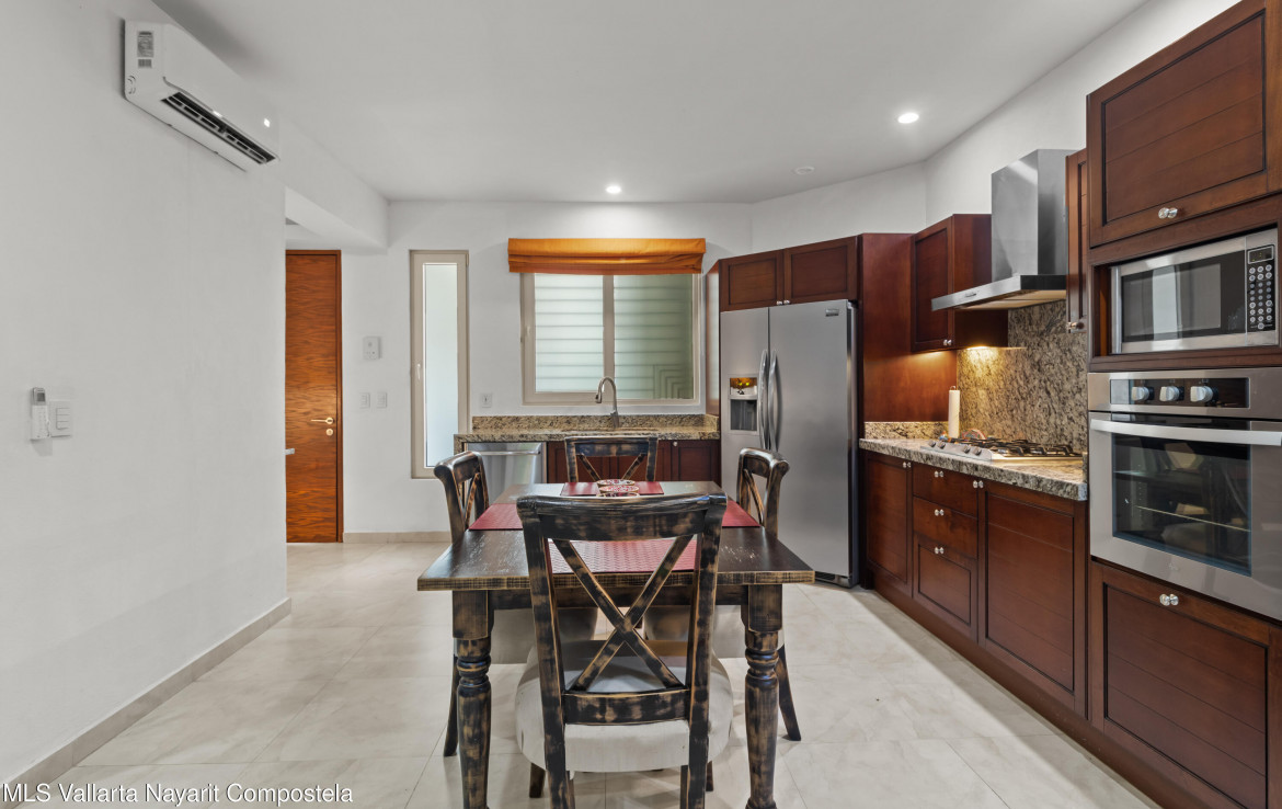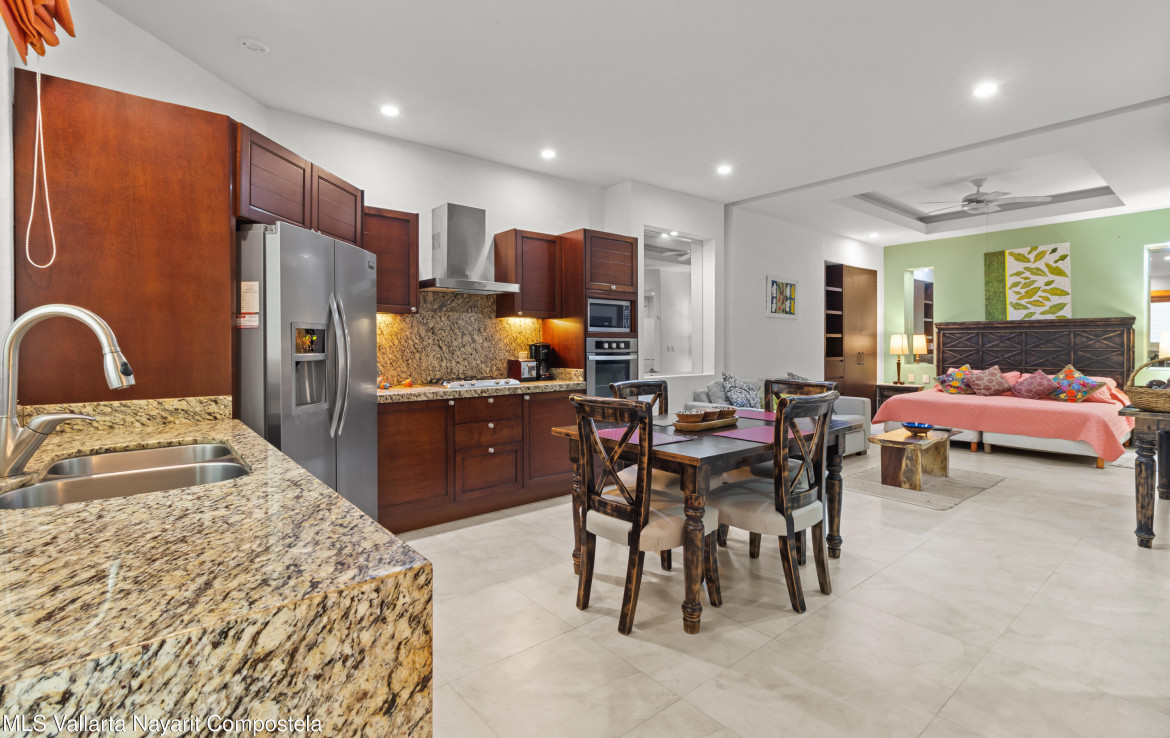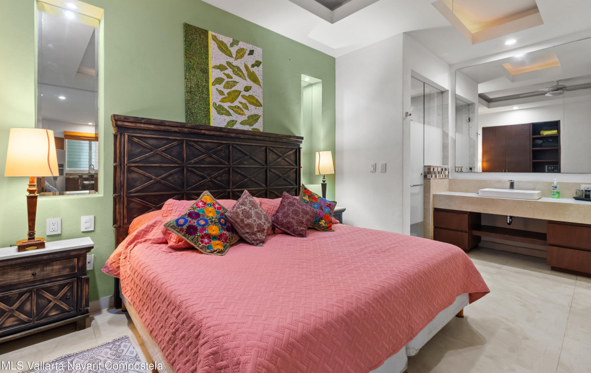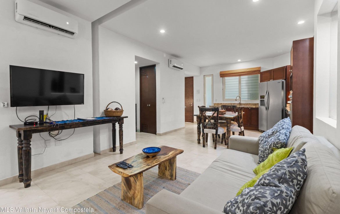 This sophisticated condo offers a perfect blend of comfort and privacy. Located on the 3rd-floor. The rooftop terrace boasts a heated infinity pool, Jacuzzi, BBQ grill, bar, and areas for dining and lounging, all with stunning 360-degree views of the Bay of Banderas, Sierra Madre Mountains, and Puerto Vallarta’s city lights. The remodeled one-bedroom, one-bath unit features a king-size bed, high-speed Wi-Fi, smart TV, air conditioning, a fully equipped kitchen, full-sized washer and dryer, and private parking and storage.