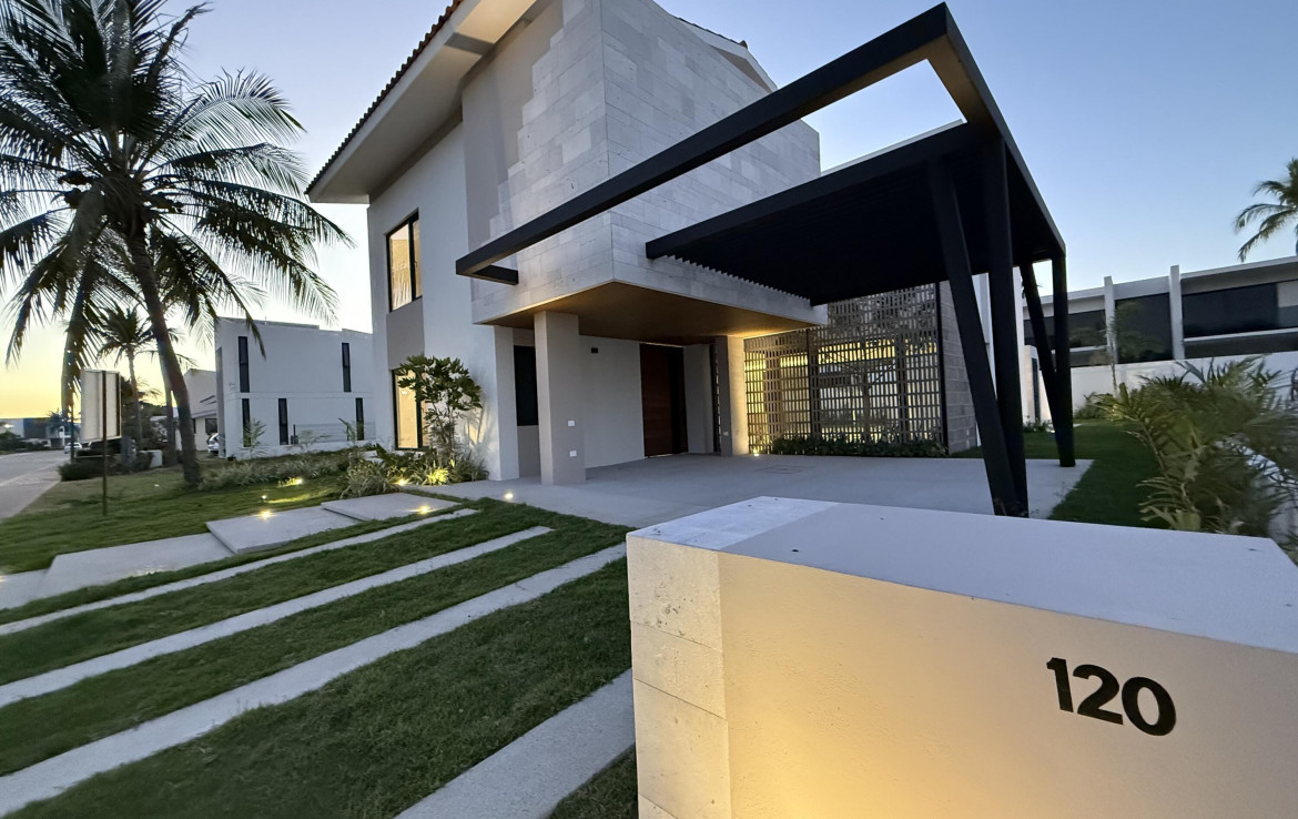 Presenting Villa Acacia 120 located inside the prestigious community of Los Tigres in Nuevo Vallarta. This sumptuous Villa has 4 bedrooms, 5 full bathrooms, pool and whirlpool tub, 4 vehicle garage, with two covered. This residence was designed and planned with a luxurious vision to accommodate the most demanding family. The Villa’s modern facade with stone and fiorito marble finishes, partially covered pergola abuts on an interior garden. Equipped kitchen with state of the art efficient quality appliances; the living room opens to the terrace and pool, incorporating interior and exterior areas. The Villa was conceptualized and designed by renowned architect Paulo Rojo who is known for his unique and original designs. Only the best quality materials available were utilized.