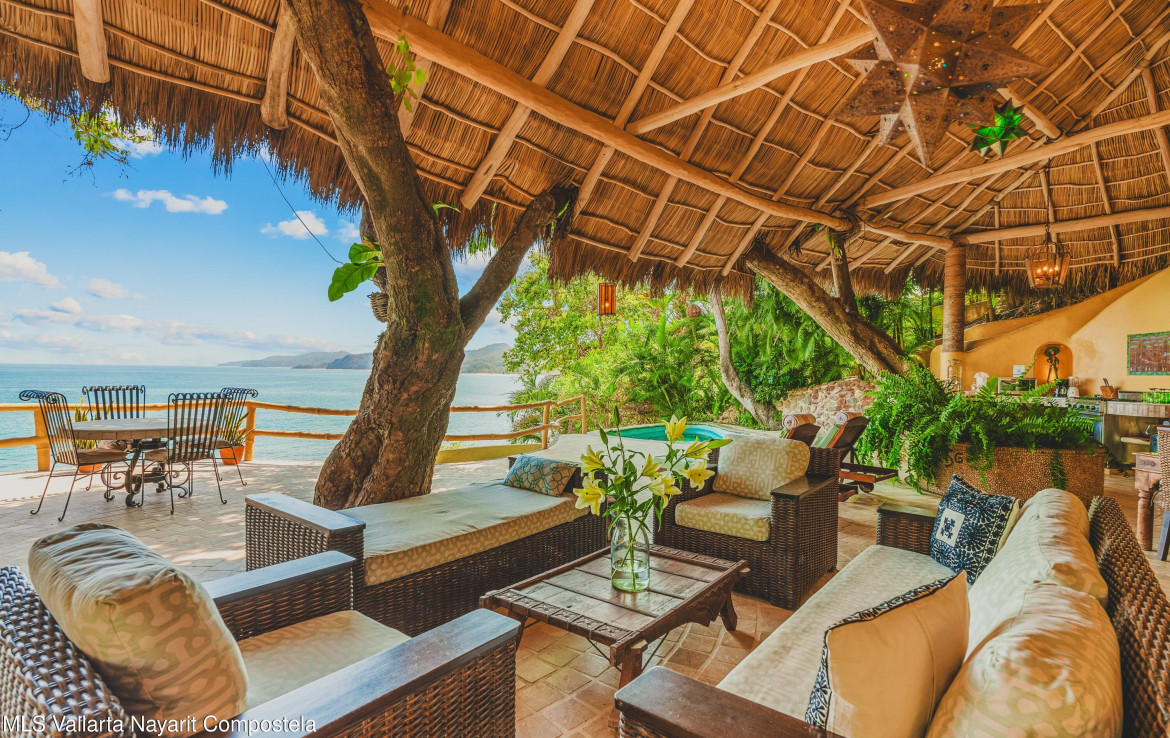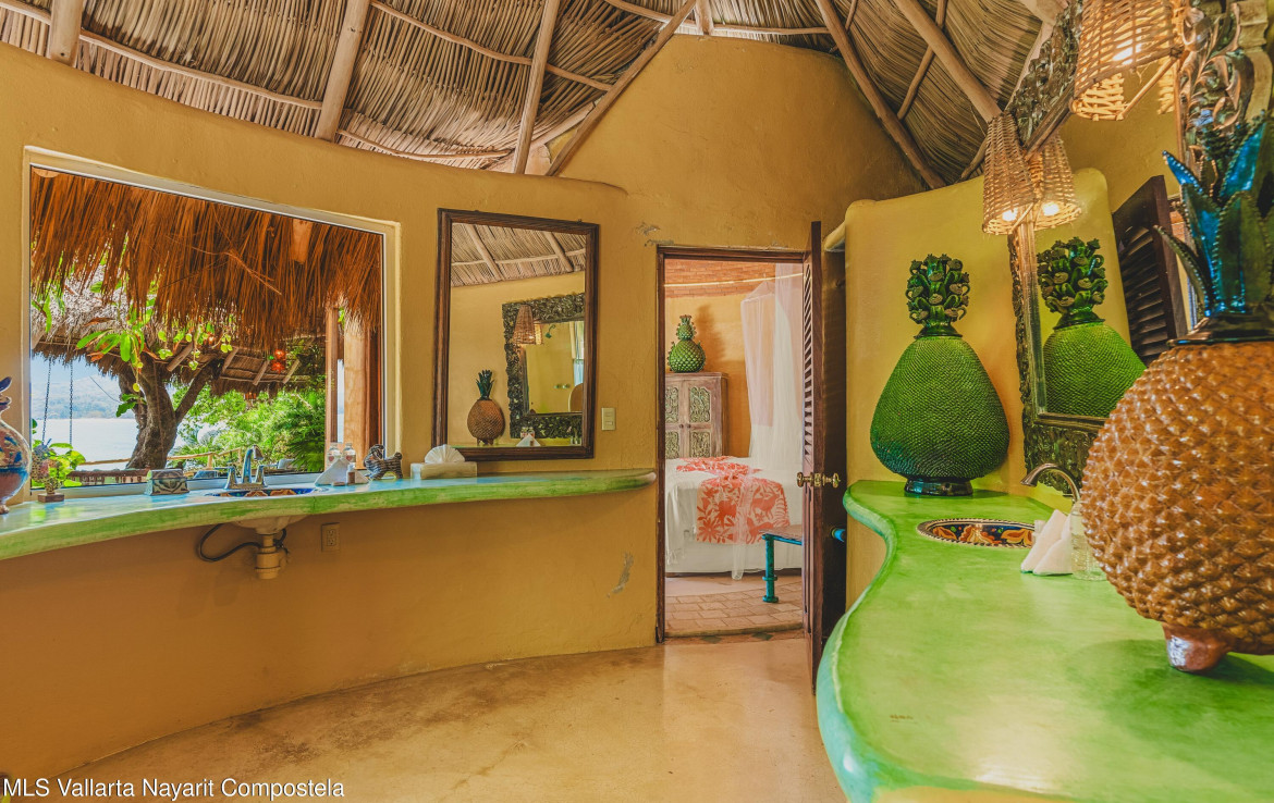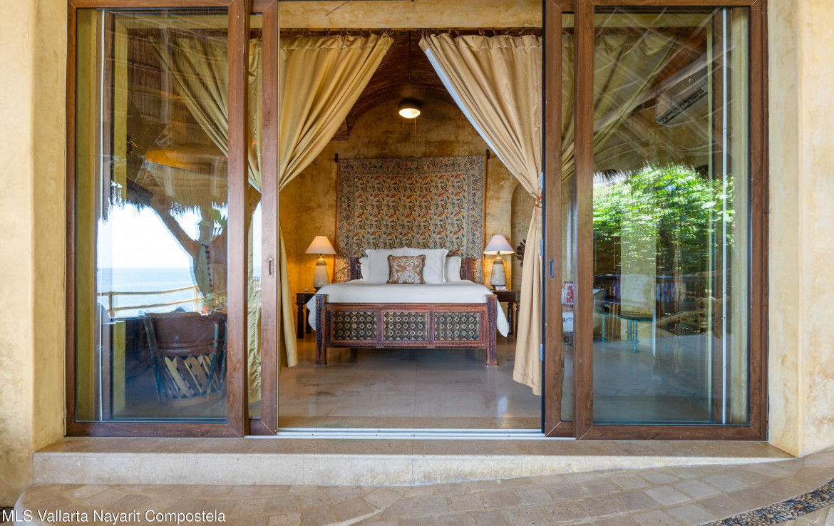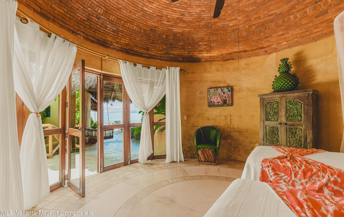 Discover Villa Arboles, a romantic luxury sanctuary within Sayulita’s exclusive beachfront Amor Boutique Hotel. This oceanfront 3 bedroom / 4 bathroom retreat offers a comforting blend of sophistication and privacy- it is 20 meters from Sayulita’s famous Fisherman’s beach, where surfing is enjoyed daily. There are three highly regarded restaurants on the beach in front. Sayulita’s vibrant town plaza is only a few minutes walk.Villa Arboles is 2,998 square feet (278 m2), is offered fully furnished and feature ocean views from every room. It offers a private plunge pool on the terrace. Just outside the entrance door there are two fabulous swimming pools, sand terrace for sunbathing, yoga studio, massage studio and expansive grass areas for lounging or hosting outdoor events.