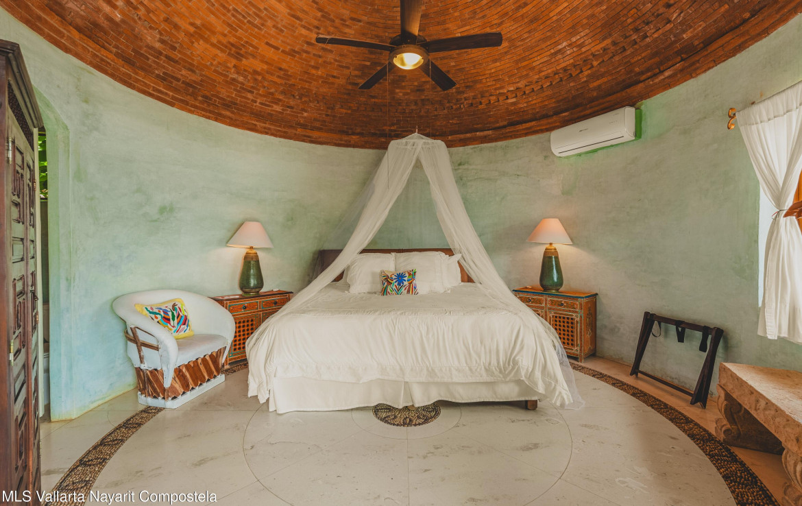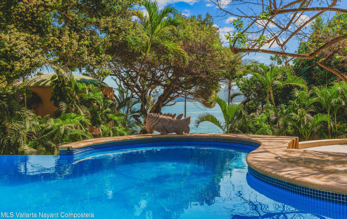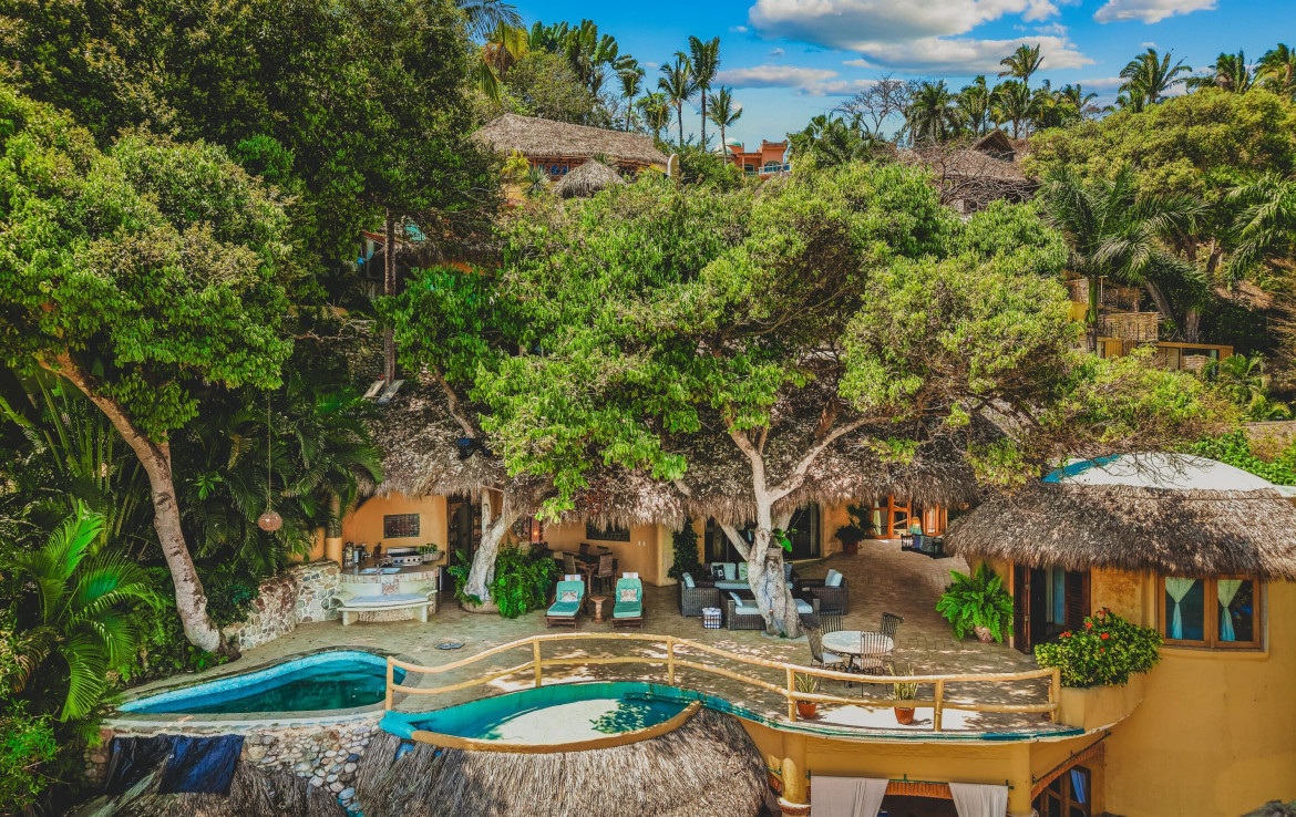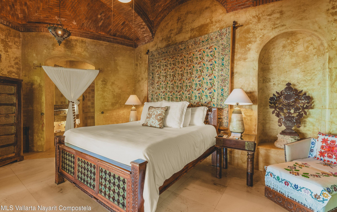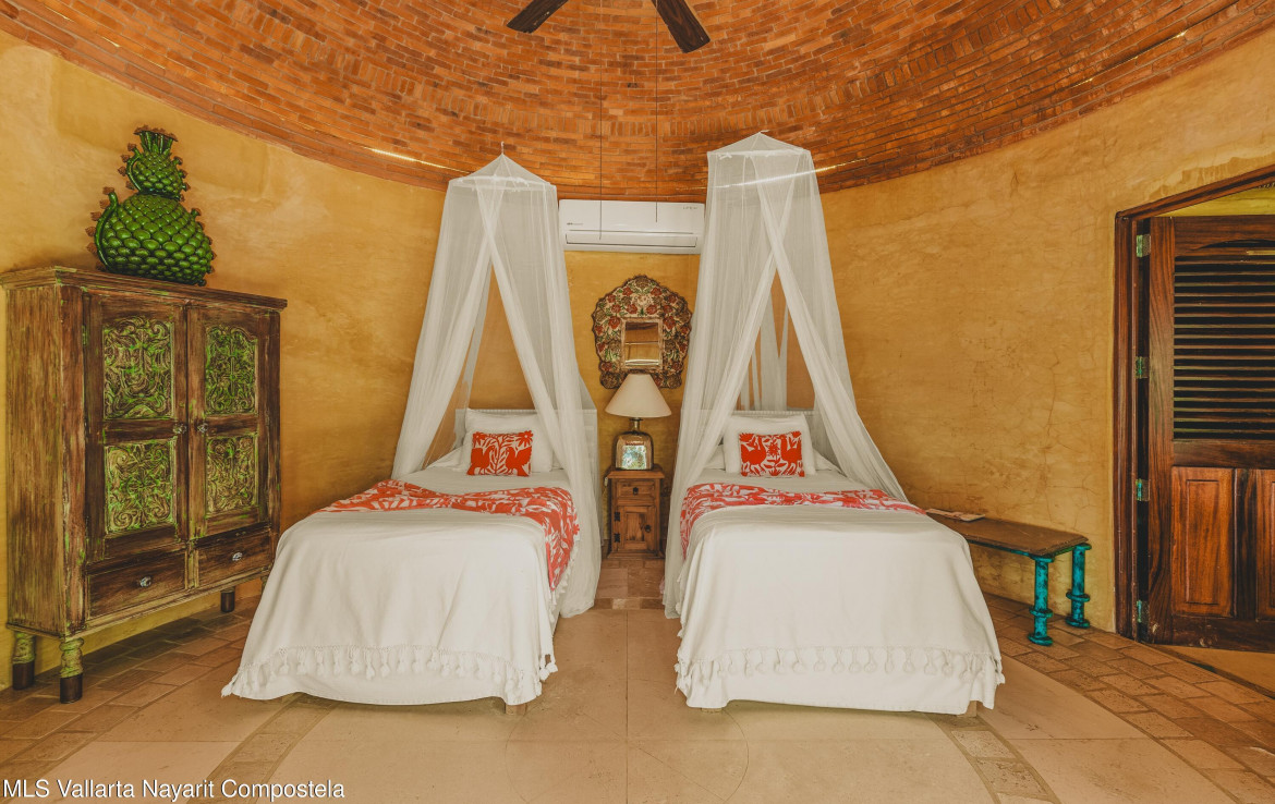 Discover Villa Arboles, a romantic luxury sanctuary within Sayulita’s exclusive beachfront Amor Boutique Hotel. This oceanfront 3 bedroom / 4 bathroom retreat offers a comforting blend of sophistication and privacy- it is 20 meters from Sayulita’s famous Fisherman’s beach, where surfing is enjoyed daily. There are three highly regarded restaurants on the beach in front. Sayulita’s vibrant town plaza is only a few minutes walk.Villa Arboles is 2,998 square feet (278 m2), is offered fully furnished and feature ocean views from every room. It offers a private plunge pool on the terrace. Just outside the entrance door there are two fabulous swimming pools, sand terrace for sunbathing, yoga studio, massage studio and expansive grass areas for lounging or hosting outdoor events.