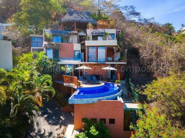 Villa Encanto es realmente un lugar magico situado en el extremo norte de Sayulita, en la pequena comunidad cerrada de Colina La Iguana. La Villa tiene capacidad para hasta 10 personas con 4 dormitorios, 4,5 banos. Esta casa cuenta con vistas impresionantes, una terraza en la azotea, piscina privada, agua filtrada, aparcamiento y servicio de limpieza de 6 dias a la semana. Se puede acceder a las playas de Sayulita y a la ciudad a pie o en carrito de golf. Un servicio de conserjeria completo incluido para que tu estancia sea facil y relajante!
