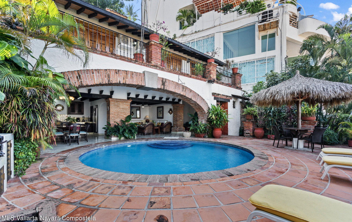 Homes of this caliber are cherished by families for generations and seldom become available. Here is your chance to own a truly exceptional villa in Amapas, boasting street access from both Hortensias and Pulpito. Featuring classic Vallarta architecture, this residence embodies the coveted indoor-outdoor lifestyle that defines Puerto Vallarta. Enjoy breathtaking views of the ocean and church, all while being just a short stroll from world-class dining and vibrant nightlife. This home truly has it all.Living areas are staggered throughout the home, and the amazing pool and kitchen area is pure relaxation. Morning Yoga or Tai Chi, read a book, enjoy the pool area, and finish your day with a gourmet meal poolside.