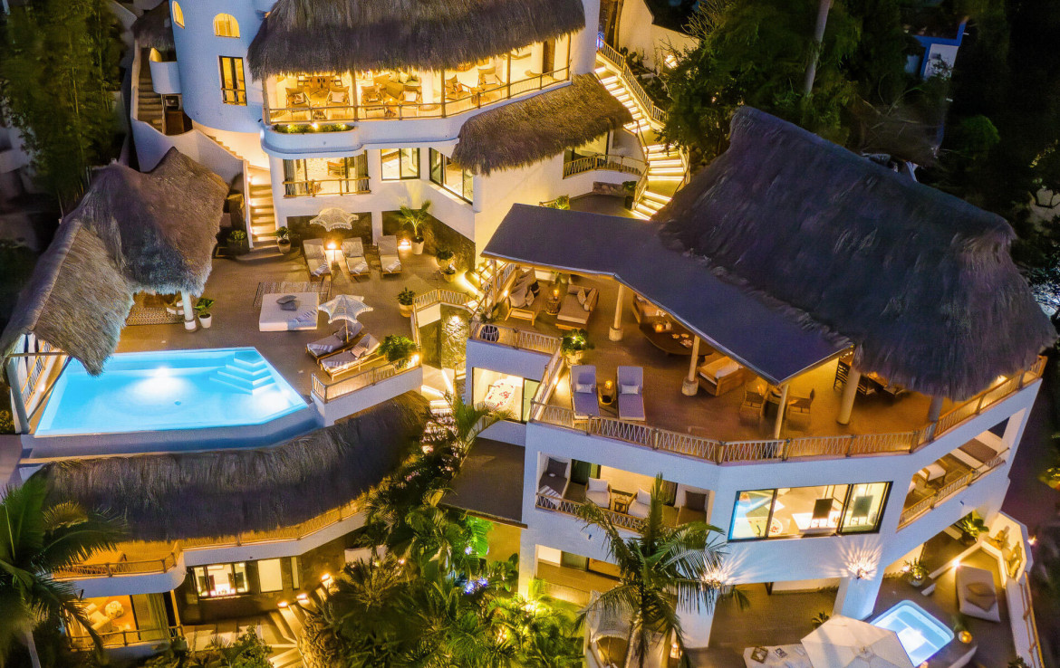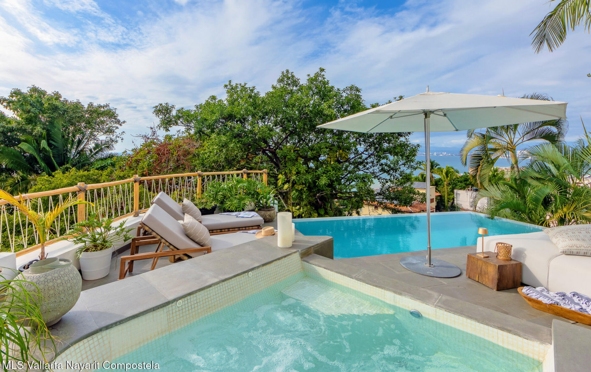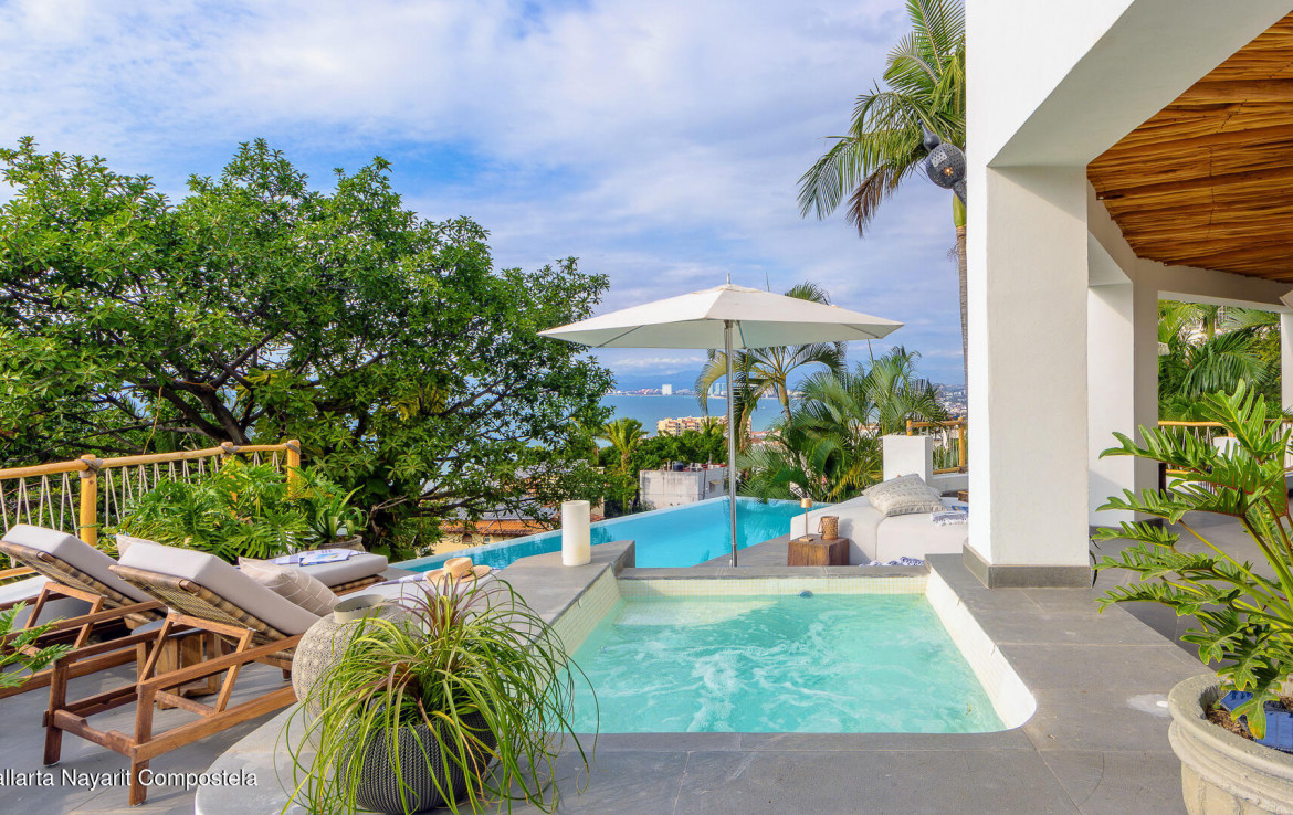 Villa M&M, Amapas, Puerto VallartaDiscover a private luxury estate in Amapas–known as the Beverly Hills of Puerto Vallarta–just an 8-minute walk to Los Muertos Beach and minutes from Zona Romantica. This exceptional offering delivers panoramic ocean, city, and jungle views with complete privacy, plus: An adjacent lot of over 800 m (approx. 8,611 sq ft), ensuring protected views and offering rare potential to expand into a one-of-a-kind private estate Sellers willing to cover buyers closing costs, creating immediate value and a smoother acquisition process Villa M&M is a fully furnished, turn-key luxury compound consisting of two seamlessly integrated villas (Monarca & Mariposa), recently remodeled in a sophisticated luxury inspired, beach-chic style.