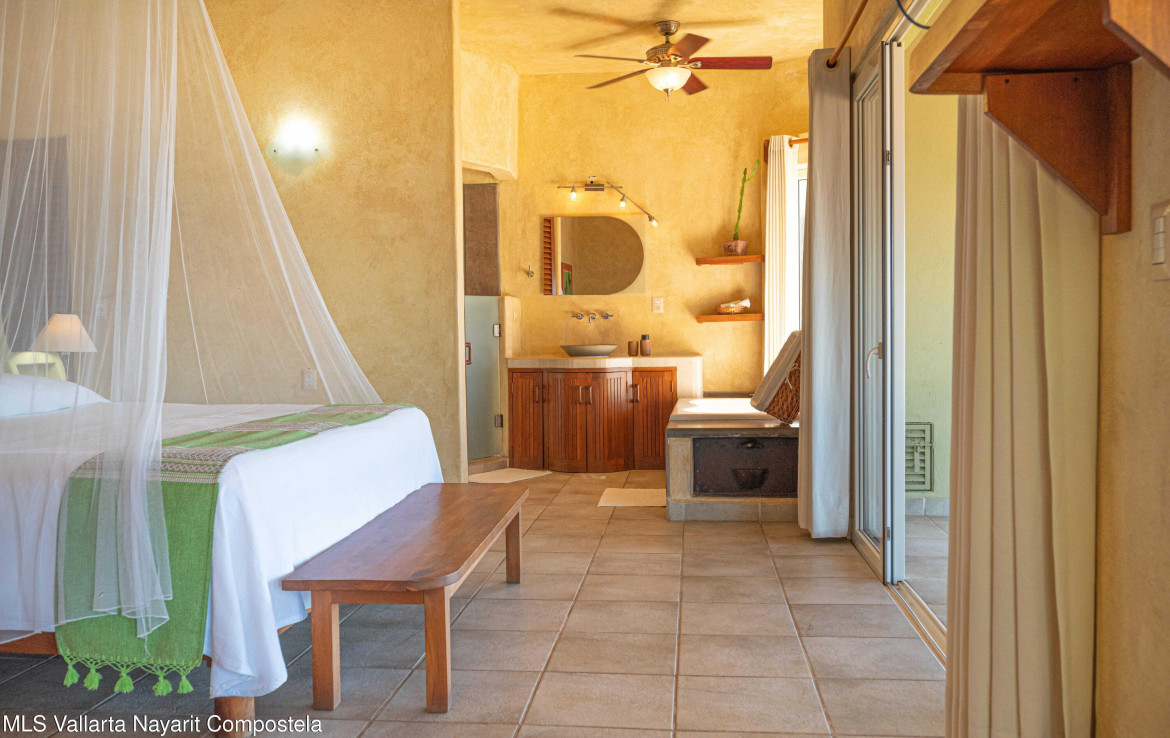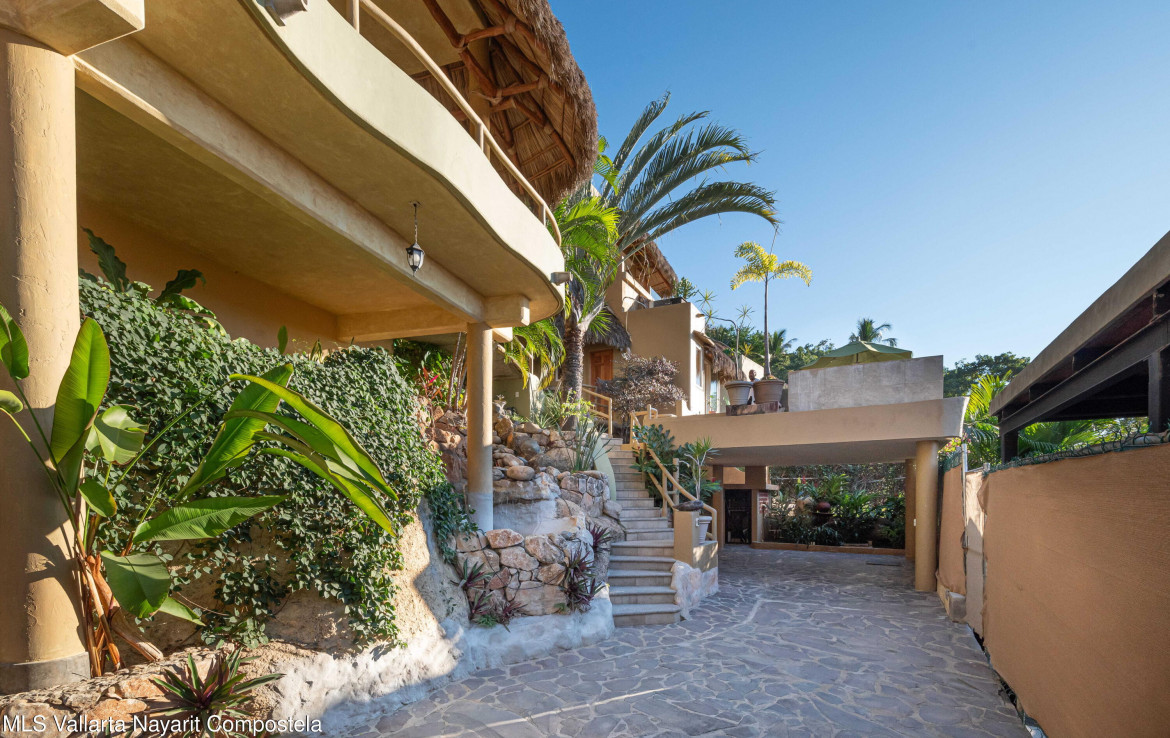 Situated in the lush and tranquil North Side of Sayulita, on the coveted Juan Escutia Street, Casa Romantica is a refined and intimate sanctuary where architecture, nature, and water coexist in perfect harmony. This exclusive property is surrounded by vibrant greenery and elevated to capture sweeping ocean and beach views, offering privacy, serenity, and timeless charm.Casa Romantica is composed of three beautifully designed independent living spaces, each offering its own unique character while sharing a cohesive, romantic aesthetic–ideal for discerning owners seeking a luxury retreat, a sophisticated income property, or a private boutique-style residence.A stylish and self-contained studio, ideal for guests or rental incomeAn upper-level one-bedroom residence