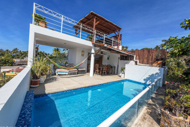 Villalita del Mar es una oportunidad increible para un comprador que desee construir y vender casas, crear un pequeno resort o un complejo familiar con varias viviendas. La gran propiedad se encuentra a 5 minutos al sur de Sayulita, entre Playa Escondida y Playa Patzquarito, y ofrece impresionantes vistas de la selva y del oceano Pacifico, con vistas hacia el sur a lo largo de la costa hasta Punta Mita. La propiedad incluye una excelente infraestructura, con conexiones a agua potable y electricidad de la ciudad, asi como caminos pavimentados y de adoquines en todo el desarrollo. El desarrollo planificado cuenta con 6 lotes (cada uno con plomeria y electricidad) y una casa parcialmente terminada, con una casita completamente acabada.
