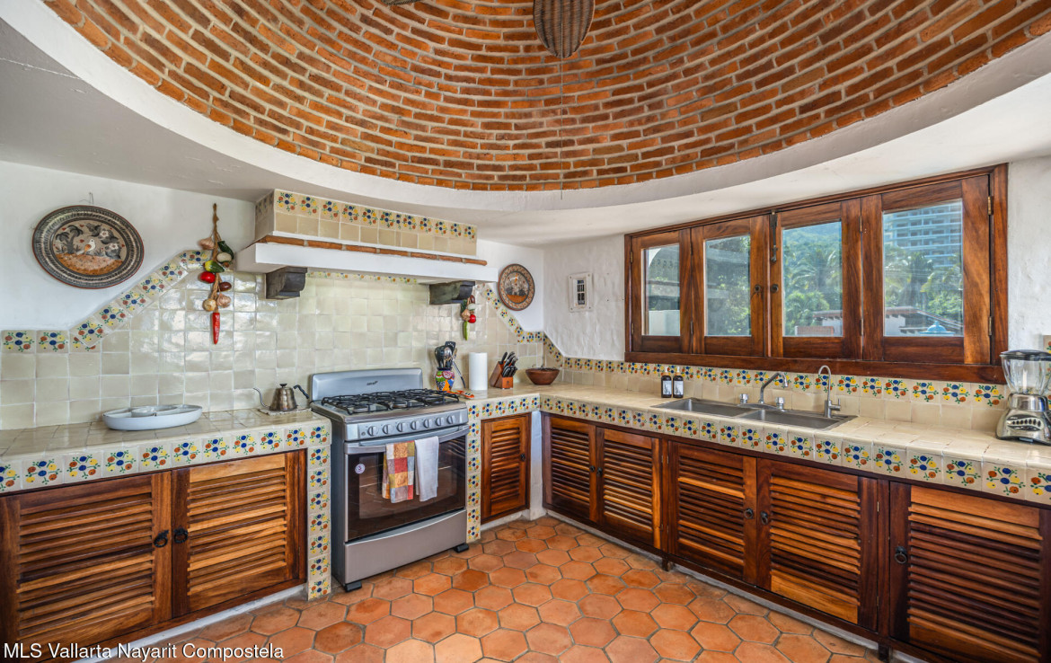 Villas Altas Garza Blanca 306 combina encanto tradicional con detalles artesanales como azulejos pintados a mano, pisos de Saltillo, vigas de madera y cupulas esculpidas. Esta casa de mas de 3,600 pies cuadrados cuenta con techos altos, amplias recamaras con bano completo y balcones con vistas espectaculares al oceano, las montanas y la ciudad. Relajate en la alberca privada de la terraza, a pocos pasos de las playas de Puerto Vallarta. — Villas Altas Garza Blanca 306 combines traditional charm with handcrafted details like hand-painted tiles, Saltillo floors, wooden beams, and sculpted cupolas. This 3,600+ sq. ft. home offers vaulted ceilings, spacious en-suite bedrooms, and balconies with stunning ocean, mountain, and city views.