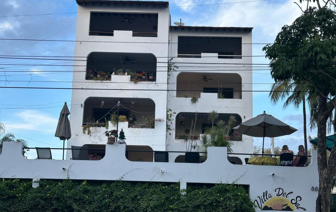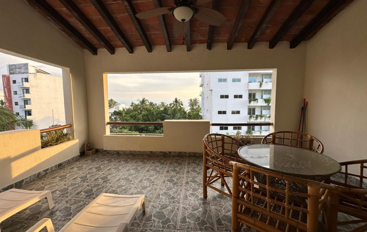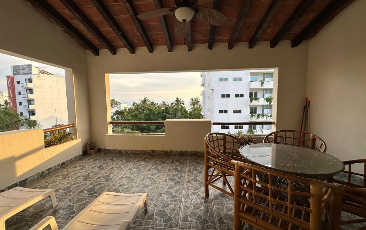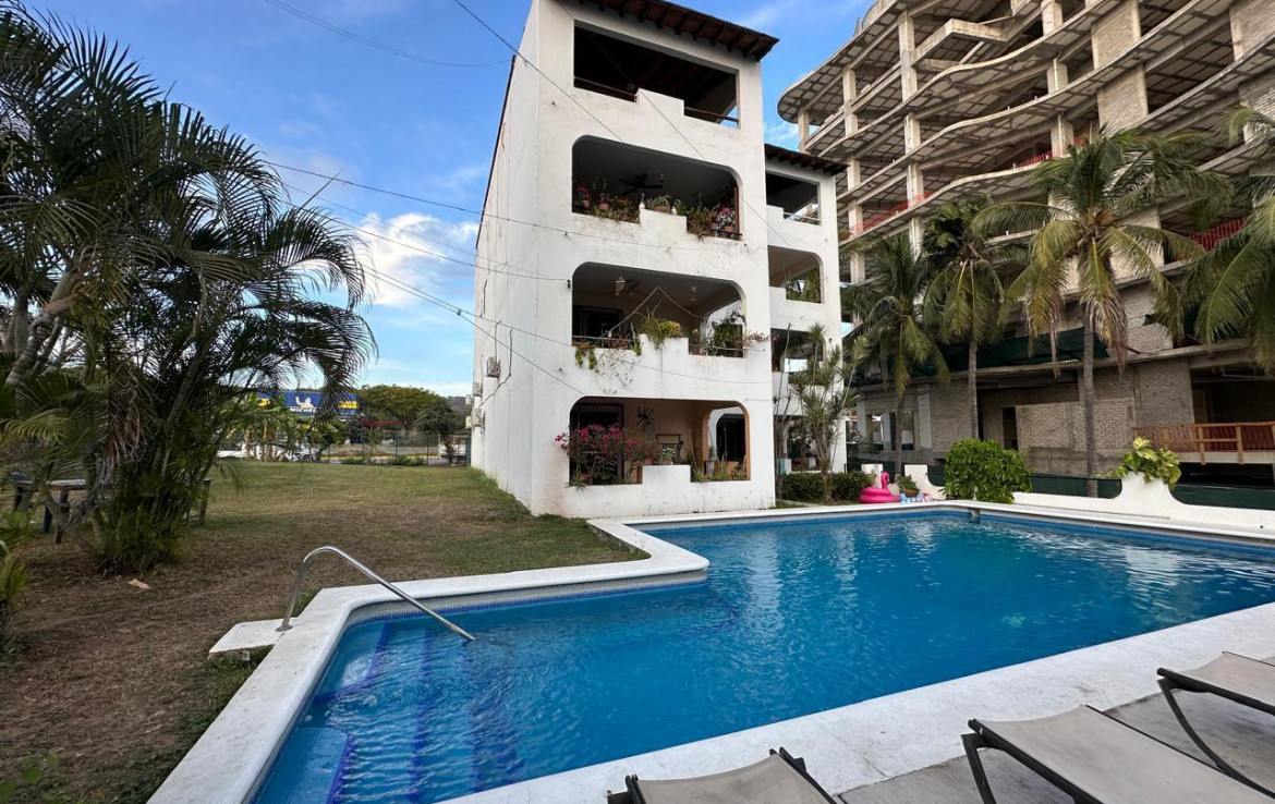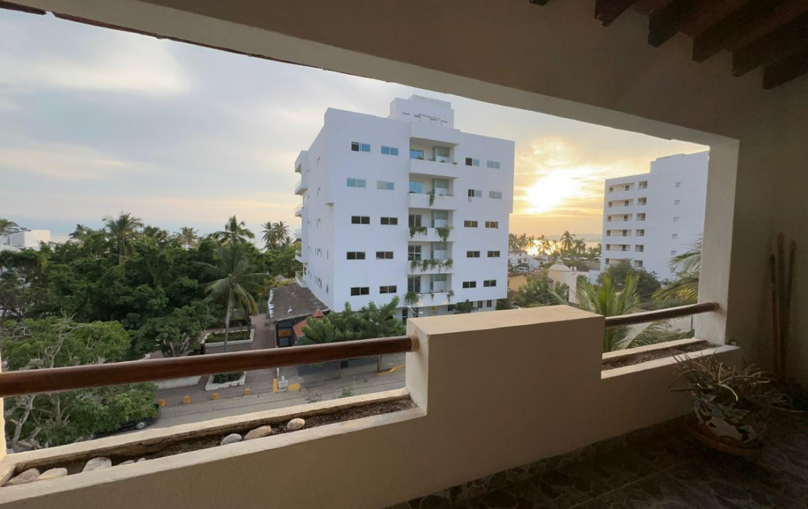 ENGLISH BELOWSi sueA+/-as con vivir a solo unos pasos de la playa, despertar cada dia con la brisa del mar, disfrutar de atardeceres espectaculares desde tu terraza y contar con un amplio jardin ideal para tus mascotas, Villas del Sol es para ti.Villas del Sol 402: un hermoso y acogedor departamento de 2 recamaras y 2 baA+/-os, recien remodelado y ubicado en el cuarto piso, lo que te regala una vista privilegiada y una terraza verdaderamente espectacular. Desde aqui podras admirar algunos de los atardeceres mas bellos que Bucerias tiene para ofrecer.La propiedad se entrega totalmente amueblada, lista para que empieces a disfrutarla desde el primer dia.