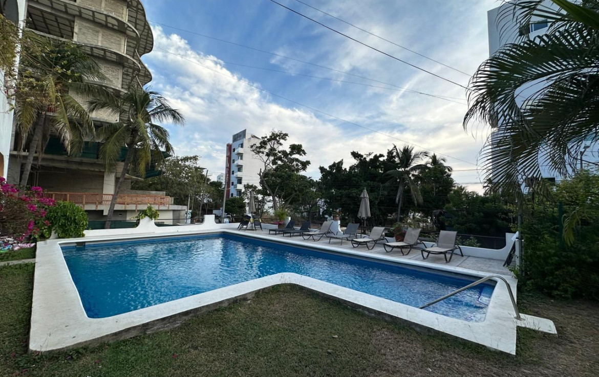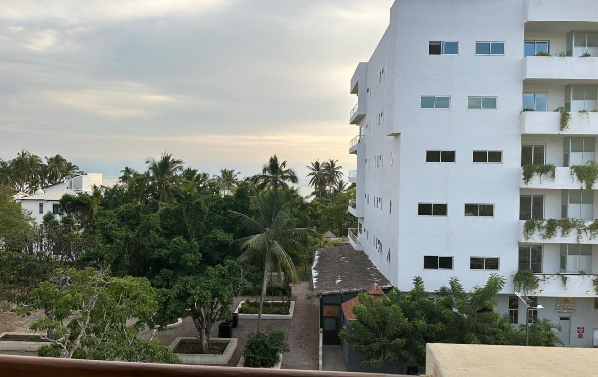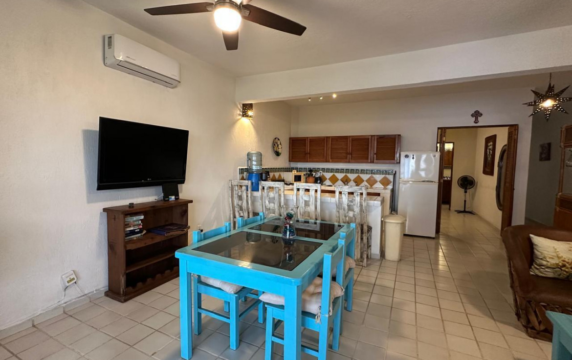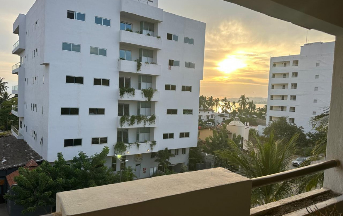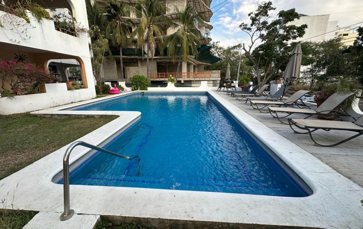 ENGLISH BELOWSi sueA+/-as con vivir a solo unos pasos de la playa, despertar cada dia con la brisa del mar, disfrutar de atardeceres espectaculares desde tu terraza y contar con un amplio jardin ideal para tus mascotas, Villas del Sol es para ti.Villas del Sol 402: un hermoso y acogedor departamento de 2 recamaras y 2 baA+/-os, recien remodelado y ubicado en el cuarto piso, lo que te regala una vista privilegiada y una terraza verdaderamente espectacular. Desde aqui podras admirar algunos de los atardeceres mas bellos que Bucerias tiene para ofrecer.La propiedad se entrega totalmente amueblada, lista para que empieces a disfrutarla desde el primer dia.