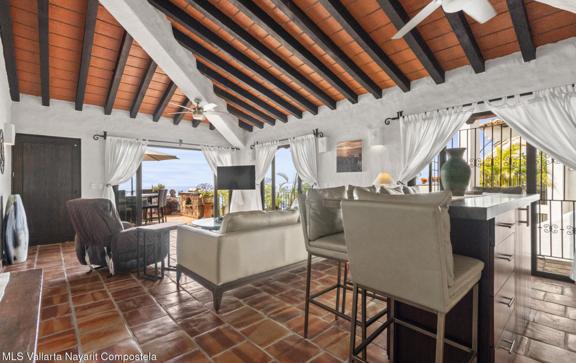 Perched atop Villas Loma Linda, this updated, charming penthouse offers sweeping ocean, sunset, and city views from every room including the luxuriously large terrace. This top-floor 2 bed, 2 bath exclusive residence features a spacious, open layout with beautifully remodeled kitchen and bathrooms, blending modern comfort with traditional character. The sought after complex also features two saltwater pools and plenty of sundeck space. Located in the desirable Amapas hillside neighborhood just above Zona Romantica, you’ll enjoy both tranquility and easy access to Puerto Vallarta’s vibrant dining, beaches, and nightlife. A rare opportunity to own a view-filled retreat in one of the area’s most sought-after enclaves.