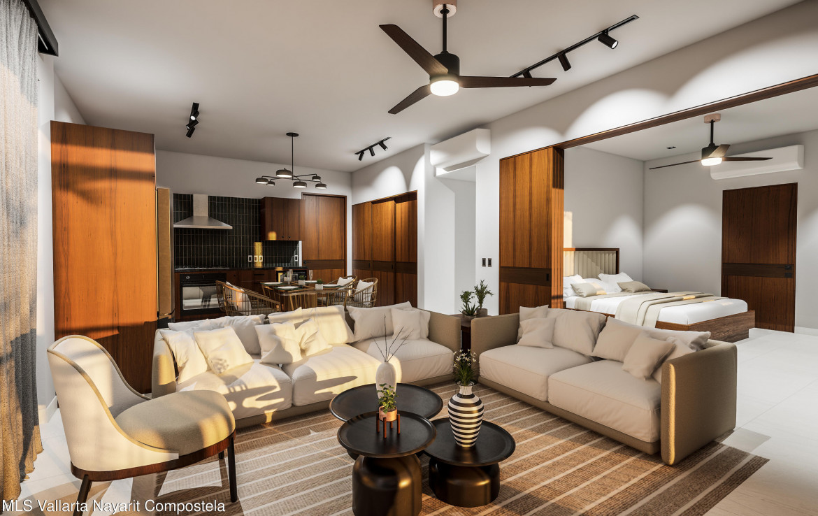 Vista Azul es un desarrollo boutique en preventa que ofrece unicamente tres residencias privadas, ubicado en la tradicional y frondosa colonia Agua Azul, en Puerto Vallarta. Disenado para brindar privacidad, confort y vistas al mar, este proyecto de baja densidad combina una arquitectura regional moderna con acabados de calidad y amplias areas exteriores.Cada residencia cuenta con un funcional diseno de 2 recamaras y 2 banos completos, con aproximadamente 104.10 m / 1,120.5 pies de construccion total, incluyendo una terraza privada con vistas al mar. Los interiores ofrecen un concepto abierto de sala y comedor, cocina contemporanea y area de lavado, creando un espacio comodo tanto para vivir de forma permanente como para inversion.