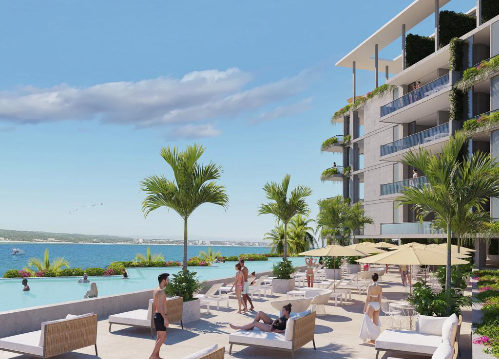 Beachfront 1BR + DEN with bunk beds/2bath luxury condominium with ocean views in in complex offering an array of amenities: beach club, main elevated pool, gym, Spa cabins, Co working center, Kids club, boutique…Furnished and ready for immediarte delivery and Deed!