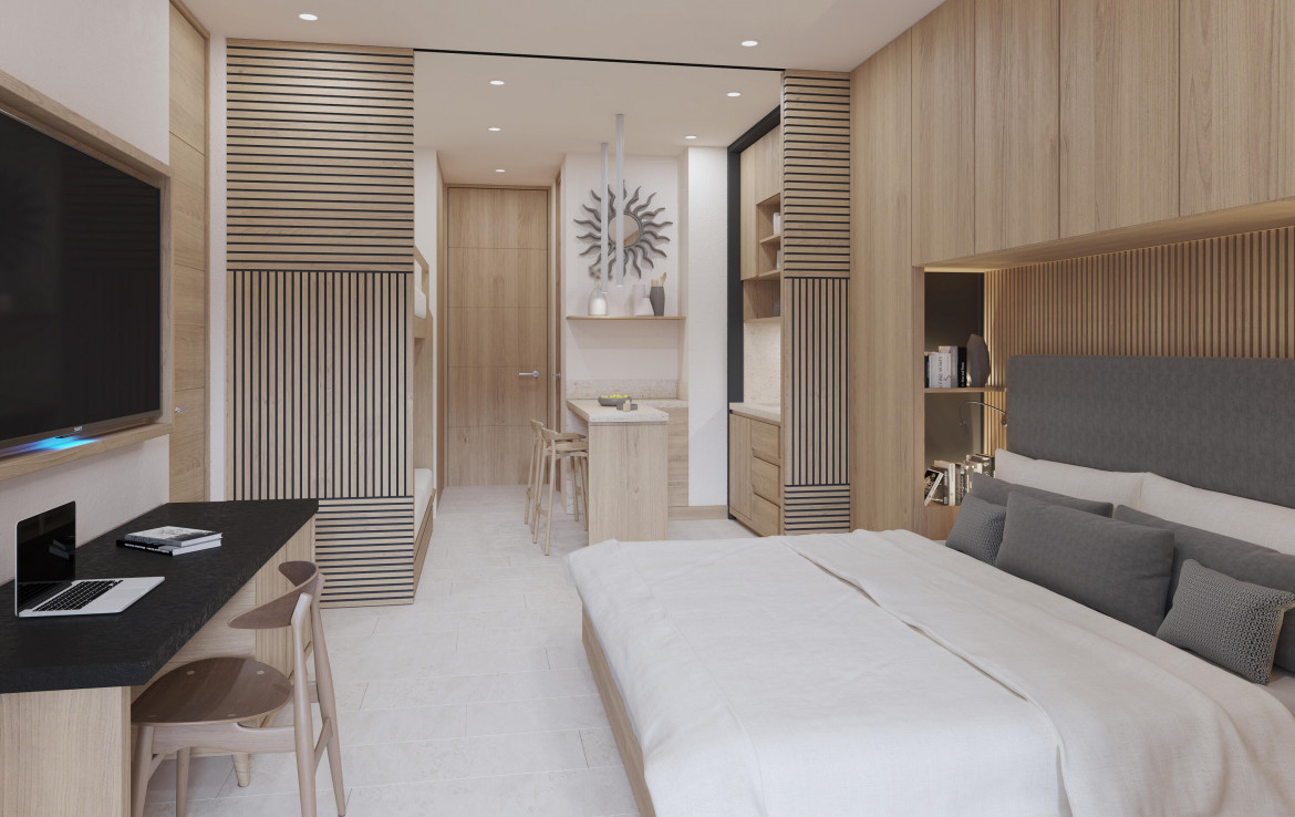 Mountain view 1BR + DEN with bunk beds/2bath , sleep 6,fully furnished: luxury condominium in a beachfront complex offering an array of amenities: beach club, main elevated pool, gym, Spa cabins, Co working center, Kids club, boutique