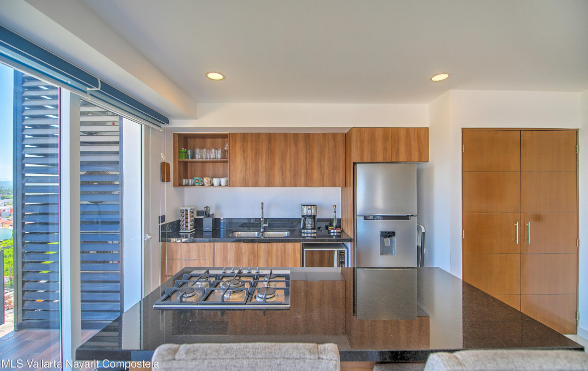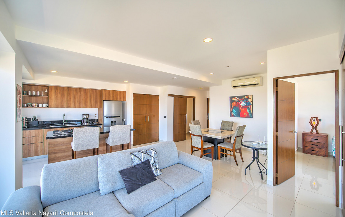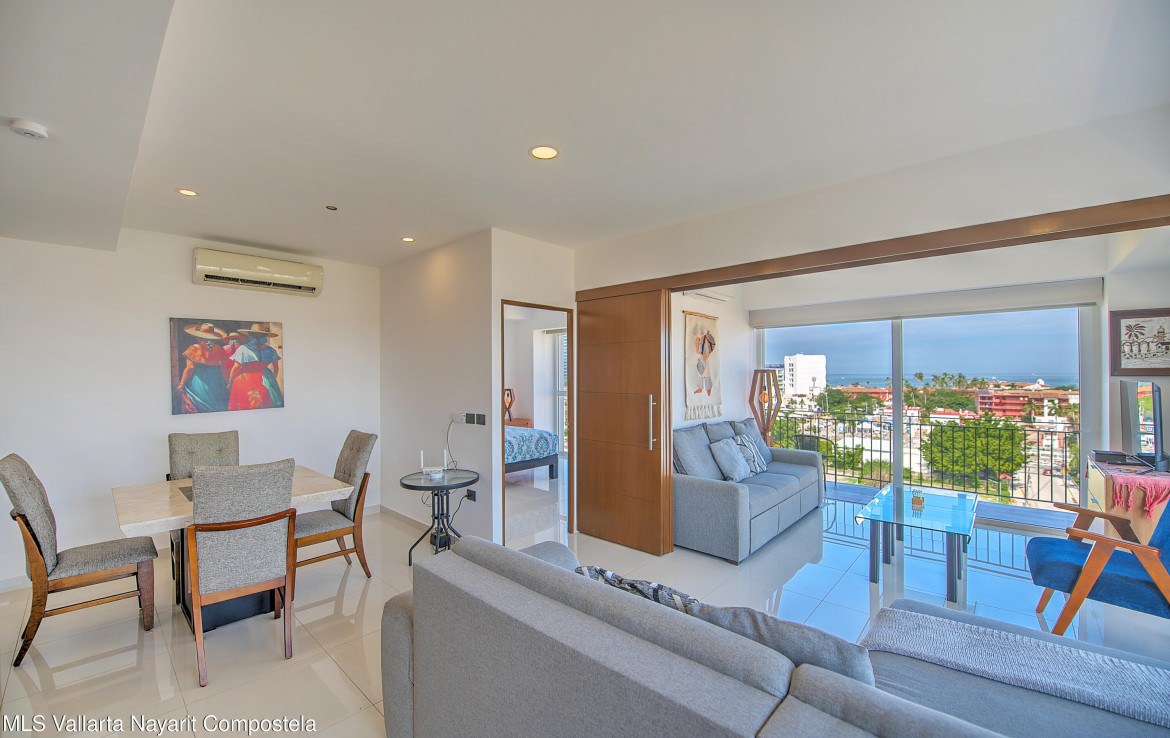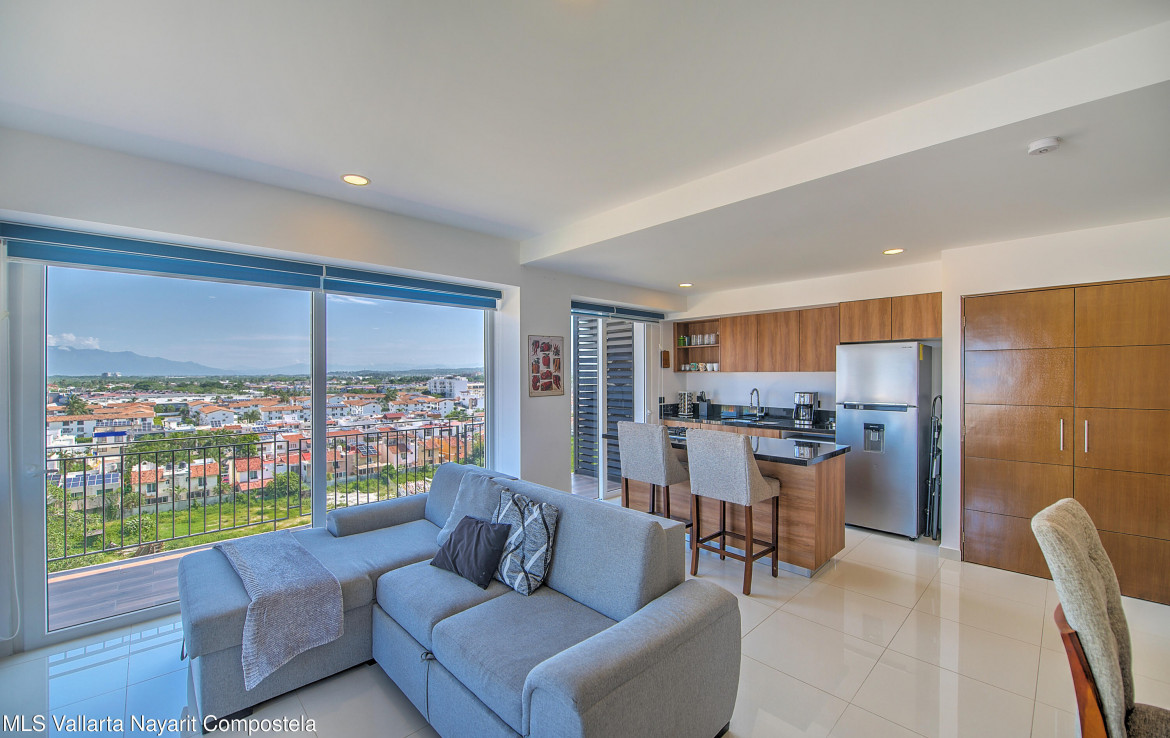 Spanish below. Welcome to your perfect Puerto Vallarta getaway or investment property in the sought-after Zoho Skies development. This bright, airy corner unit offers a smart, flexible floorplan that easily converts from a spacious one-bedroom into a functional two-bedroom layout–ideal for hosting guests or maximizing rental income. Floor-to-ceiling windows flood the space with natural light, while modern finishes and an open kitchen design create a sleek, inviting atmosphere. Step outside and enjoy a full suite of resort-style amenities, including a rooftop pool and social terrace with panoramic views, fitness center, kid’s zone, and easy access to top hospital, commercial plaza, shops and cafes. Located just a 10-minute stroll to the beach and close to restaurants, shopping,