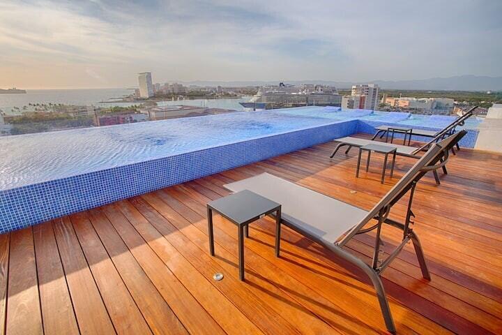 ZOHO Estudio con un bano completo, amueblado, situado en el punto estrategico de Puerto Vallarta, a poca distancia de la playa, centros comerciales, restaurantes, cafeterias, mercados, etc. Muy buenas amenidades, techo, sala-bar, estacionamiento, seguridad 24/7. Unidad con balcon. Estudio ZOHO, with a 1 bathroom, estrategy located in Puerto Vallarta, short distance to the beach, shopping centers, restaurants, coffy shops, markets, etc. Amenities: roof top, parking, security 24hrs. Unit with balcony.
